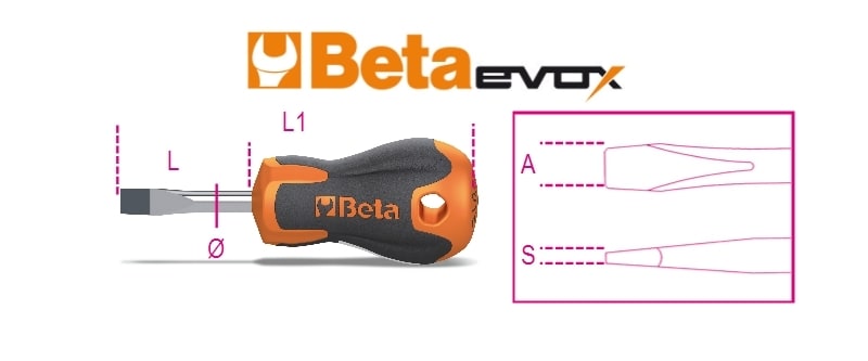 BETA - Giravite Evox per viti a testa con intaglio, tipo cortissimo cromati punta nera, lama piatta Evox n 4x30.