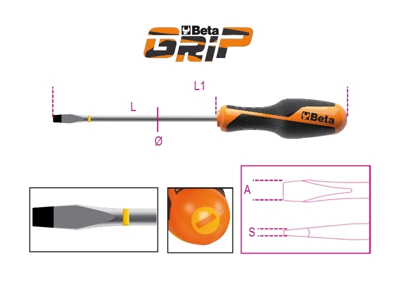 BETA - Giravite per viti a testa con intaglio colorato, lama piatta color betagrip 4x100.