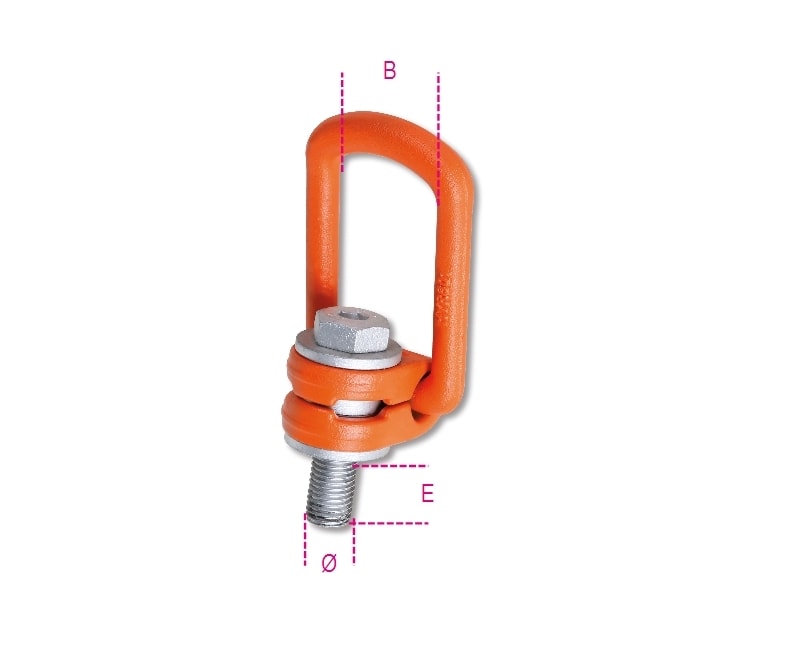 BETA - Golfare maschio per sollevamento con staffa disassata, acciaio legato ad alta resistenza, golfari girevoli disass. t. 2,5 m20-35mm.