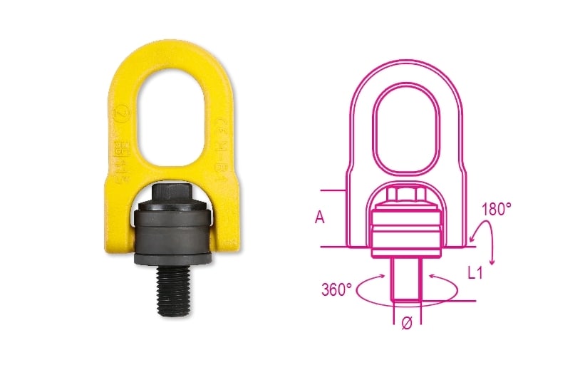 BETA - Golfari maschio per sollevamento, orientabili a doppia articolazione, acciaio legato ad alta resistenza, golfari maschio girevoli soll. t.0,3 m8.