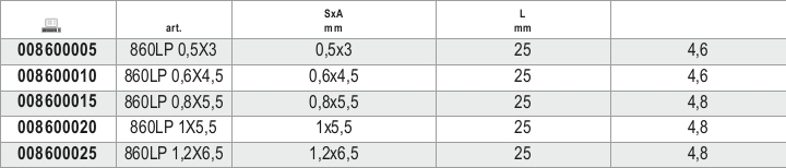 BETA - Inserti colorati per avvitatori per viti a testa con intaglio ESAGONALI 1/4-L25 LP 1,0X5,5. 008600020