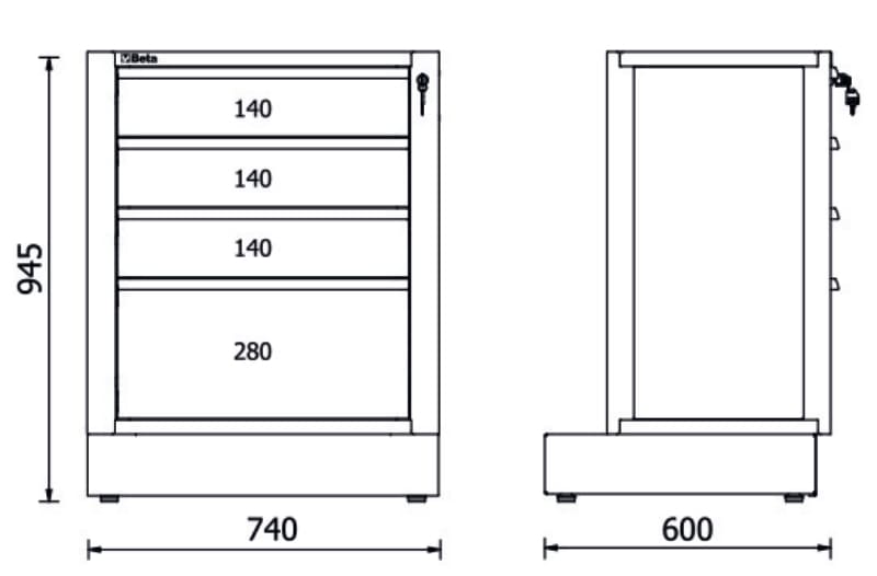 BETA - Modulo fisso con 4 cassetti per arredo officina RSC50 M4.