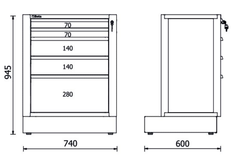 BETA - Modulo fisso con 5 cassetti per arredo officina RSC50, moduli 5 cassetti M5, ideale per organizzare attrezzi.