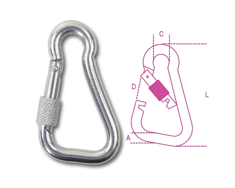 BETA - Moschettoni asimmetrici con ghiera inox AISI 316, moschet. asimmetrici c/ghiera inox 8x80. 082760308