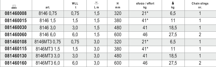 PROFESSIONALE FACILE SICURO - Modello professionale, a norma EN13157, facile da installare e utilizzare. - Progettato per sollevare, tirare e ancorare carichi pesanti rapidamente e in sicurezza. - Collegabile a un punto fisso o a dispositivi mobili per operazioni di sollevamento. - Utilizzabile in qualunque posizione per operazioni di tensionamento e ancoraggio. - Freno automatico a doppio salterello per garantire le migliori condizioni di sicurezza. - Cuscinetti a rulli per una maggiore fluidità e durabilità. - Gancio girevole con sicura. - Coefficiente di sicurezza 4. - WLL: carico limite di lavoro. DATI TECNICI - coefficiente di sicurezza: 4 - piastra di identificazione seriale CERTIFICATI DISPONIBILI - Certificato del Fabbricante - Dichiarazione di Conformità CE - Rapporto di Prova tipo 2.2 UNI EN10204 - Specifica Prodotto
