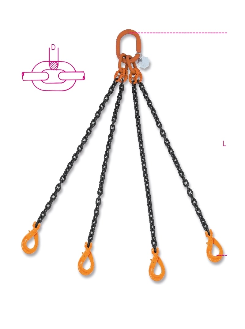 BETA - Pendente per sollevamento catena a 4 bracci, ganci Self-Locking grado 8 EN818 MT1 C16SL.