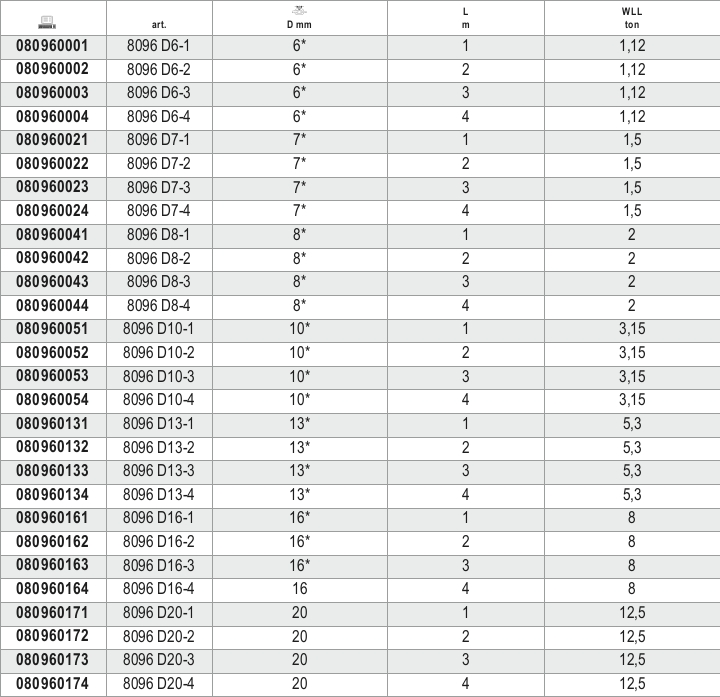 DATI TECNICI - coefficiente di sicurezza: 4 - piastrina di identificazione seriale CERTIFICATI ALLEGATI - Certificato del Fabbricante UNI EN818-4 - Dichiarazione di Conformità CE CERTIFICATI DISPONIBILI - Specifica Prodotto