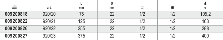 BETA - Prolunghe con attacchi quadri maschio e femmina 1/2" cromate 375mm 1/2 /23.