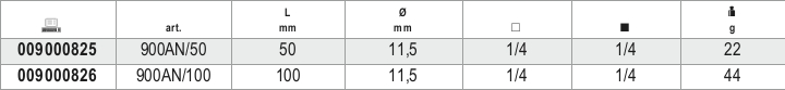 BETA - Prolunghe con attacchi quadri maschio e femmina 1/4" angolari cromate MM50 AN/50.