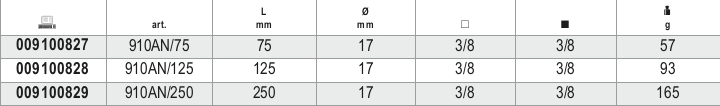 BETA - Prolunghe con attacchi quadri maschio e femmina 3/8" angolari cromate 75mm an/75.