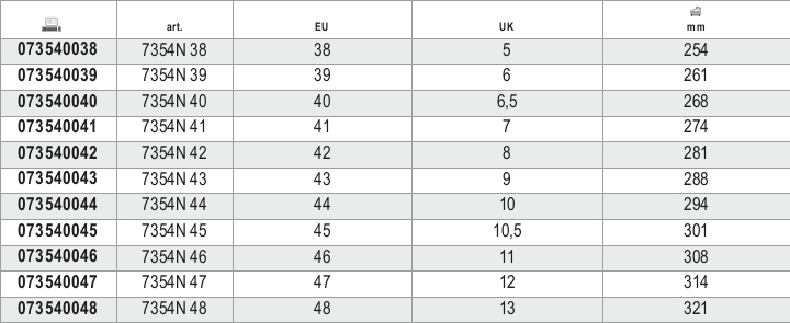 Tomaia:- Pelle pieno fiore ingrassata idrorepellente - Copripuntale di rinforzo in poliuretano - Inserto antiabrasione sul tallone - Dotata di membrana Tepor, waterproof, antivento ed estremamente traspirante Suola:- Intersuola in poliuretano espanso a basso peso specifico - Battistrada in gomma VIBRAM® ''Ranger'' - Resistente al calore da contatto HRO e studiata per offrire il massimo delle prestazioni Puntale:Fibra di vetro, resistenza 200 joule Antiperforazione:Fibra composita con trattamenti ceramici Sottopiede:Tessuto nero accoppiato a PE ed EVA, materiale che non si deforma ritornando alla forma iniziale quando il piede viene estratto dalla calzatura. Forato in pianta per garantire maggiore traspirazione e dotato di inserto sul tallone ABS con densità differente per migliorare l\'assorbimento degli urti con il terreno. Peso:780 (g) Taglie:EU: 39-48 UK: 6-13 Note:Calzatura WR resistente all\'acqua: sottoposta a prova, in una vasca con 3 cm di acqua, dopo 100 lunghezze, l\'area totale bagnata all\'interno della calzatura non deve superare i 3 cm² (macchia).