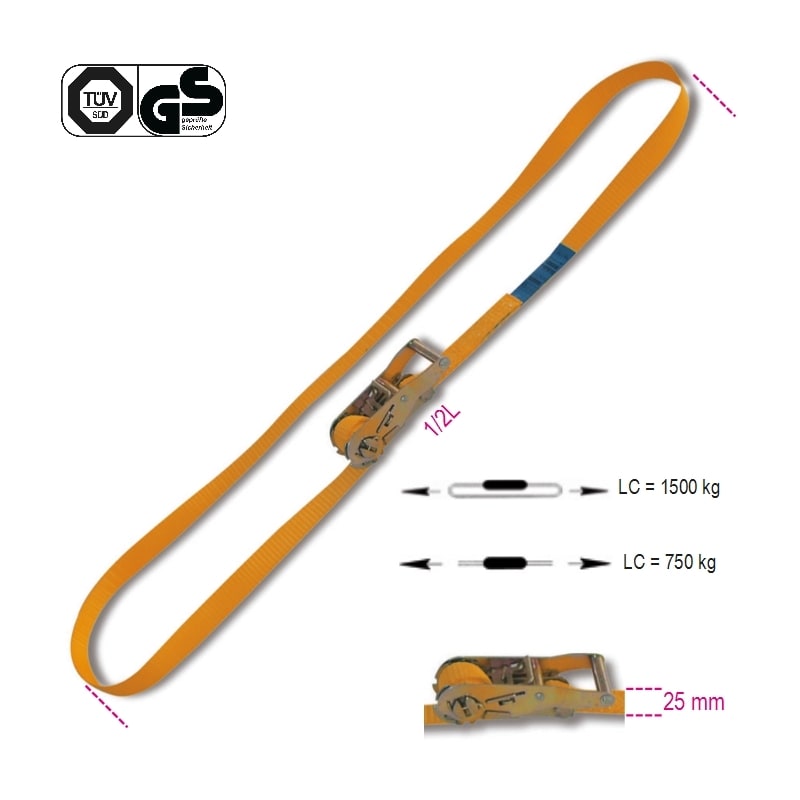 BETA - Sistemi di ancoraggio ad anello LC 1500kg con cricchetto tenditore nastro in poliestere ad alta tenacità (PES) 25mm - MT5. 081850005