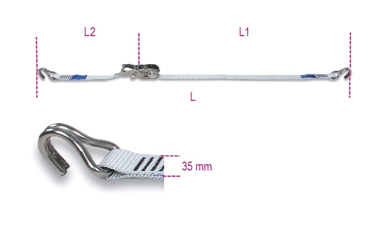 BETA - Sistemi di legatura a cricchetto AISI 304 nastro in poliestere ad alta tenacità LC 300kg ganci uncino 25mm - MT6. 082930106