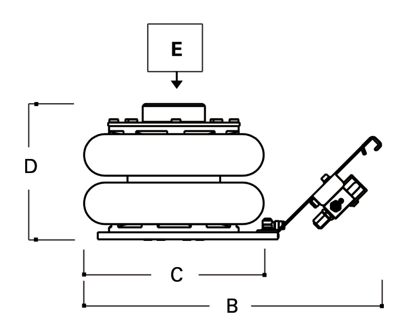 Dotato di: - membrana alta resistenza a tre strati e guida telescopica interna - dispositivo d\'arresto a fine corsa e valvola di sicurezza per carichi eccessivi - possibilità di utilizzo anche sui ponti sollevatori DATI TECNICI portata: 2 t peso: 14 kg pressione di alimentazione: 8-10 bar altezza: min.132 - max. 326 mm