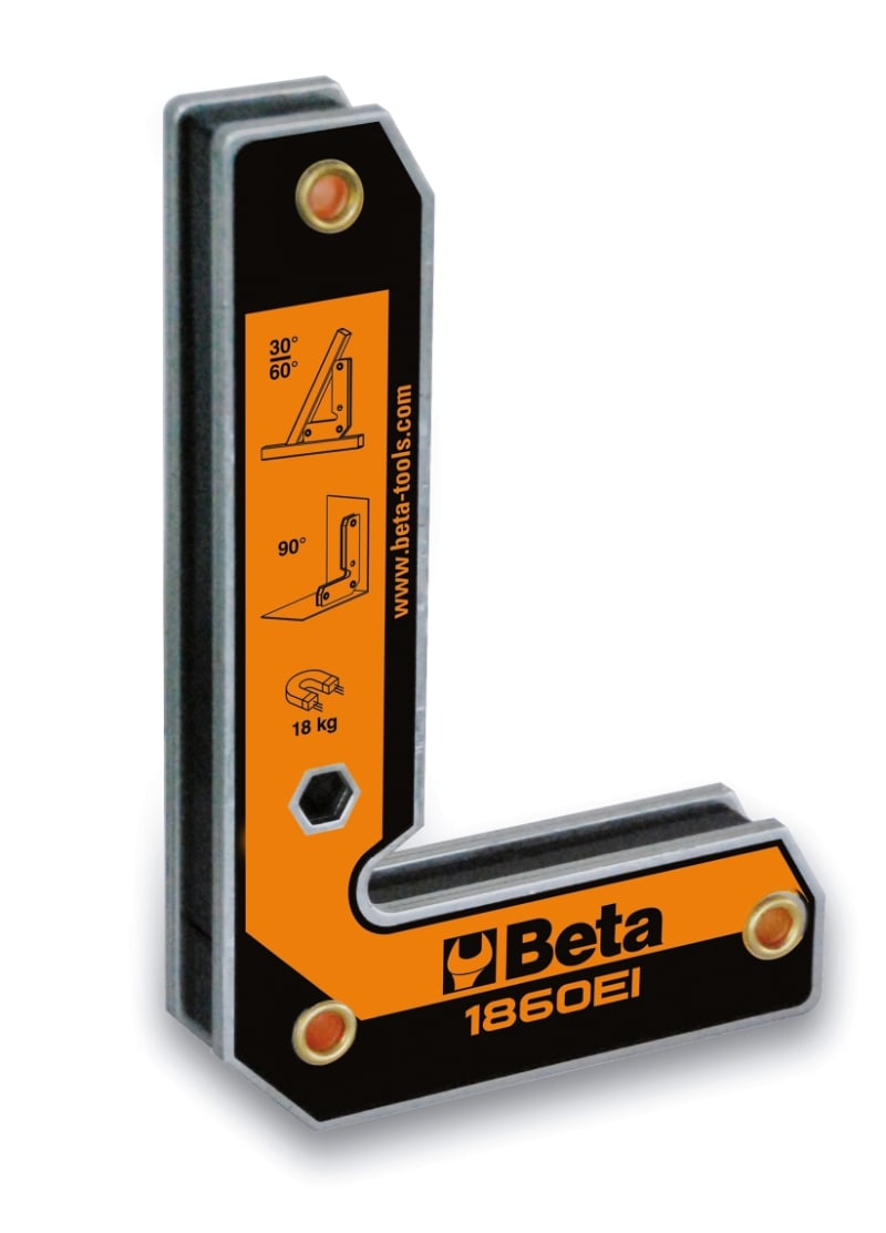 Caratteristiche: - Ideale per bloccare particolari tubolari o piatti - 18Kg di forza magnetica - Con smussi per angoli da 30 e 60° - Con foro esagonale per facilitare il distacco del magnete dal metallo