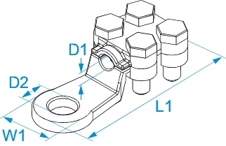 Morsetto diritto a 4 bulloni-capicorda pressofusi in ottone nichelato.