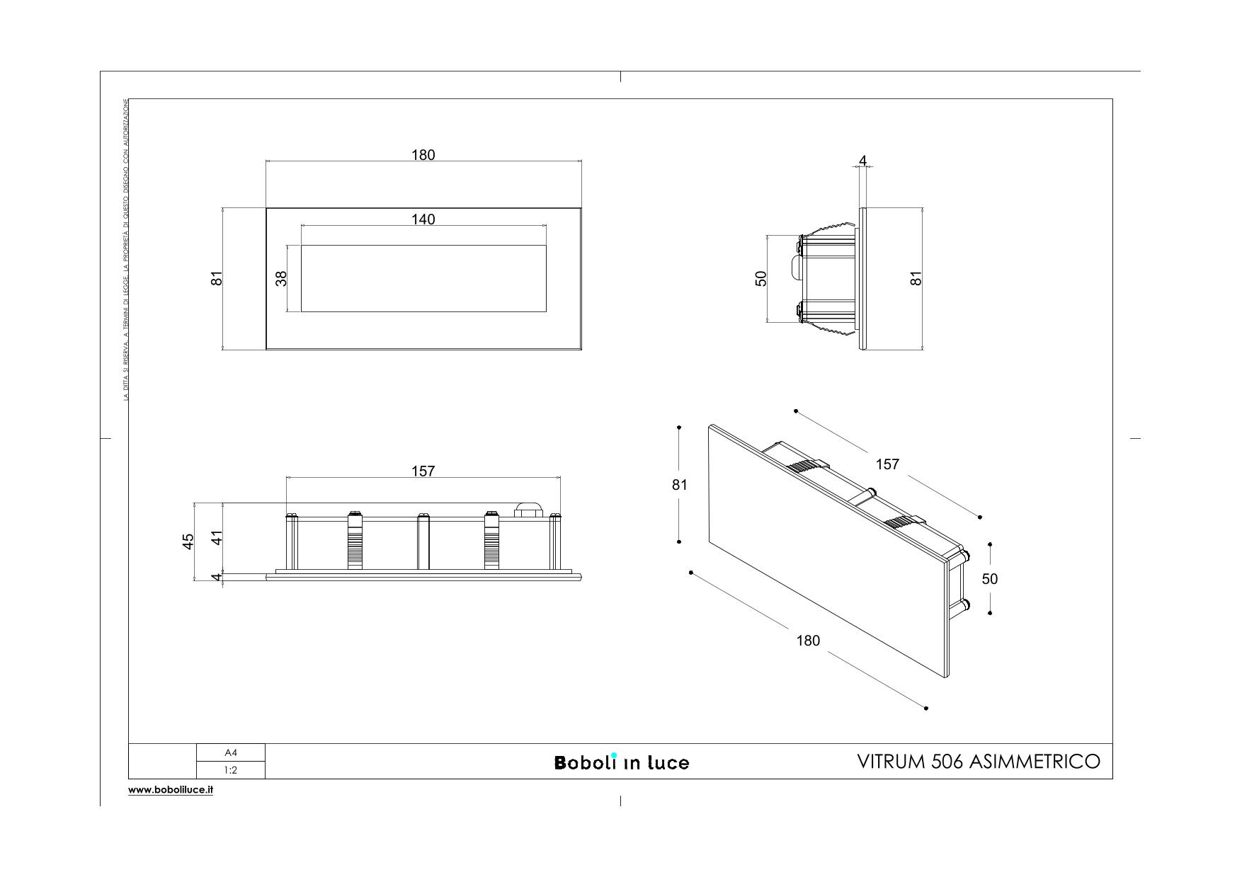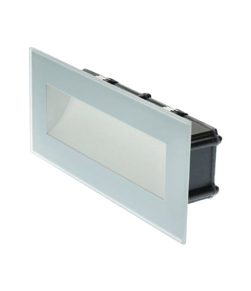 VITRUM506 ASIMMETRICO 230V 7W 3000K ON/OFF PER CARTONGESSO; INCASSO PER CARTONGESSO IN LEGA EN AW 6063 RICAVATO DA LAVORAZIONE MECCANICA A CNC PROTETTO CON PROCESSO DI PASSIVAZIONE, SCHERMO TOTALE IN VETRO AD ALTO SPESSORE SERIGRAFASTO E SMERIGLIATO