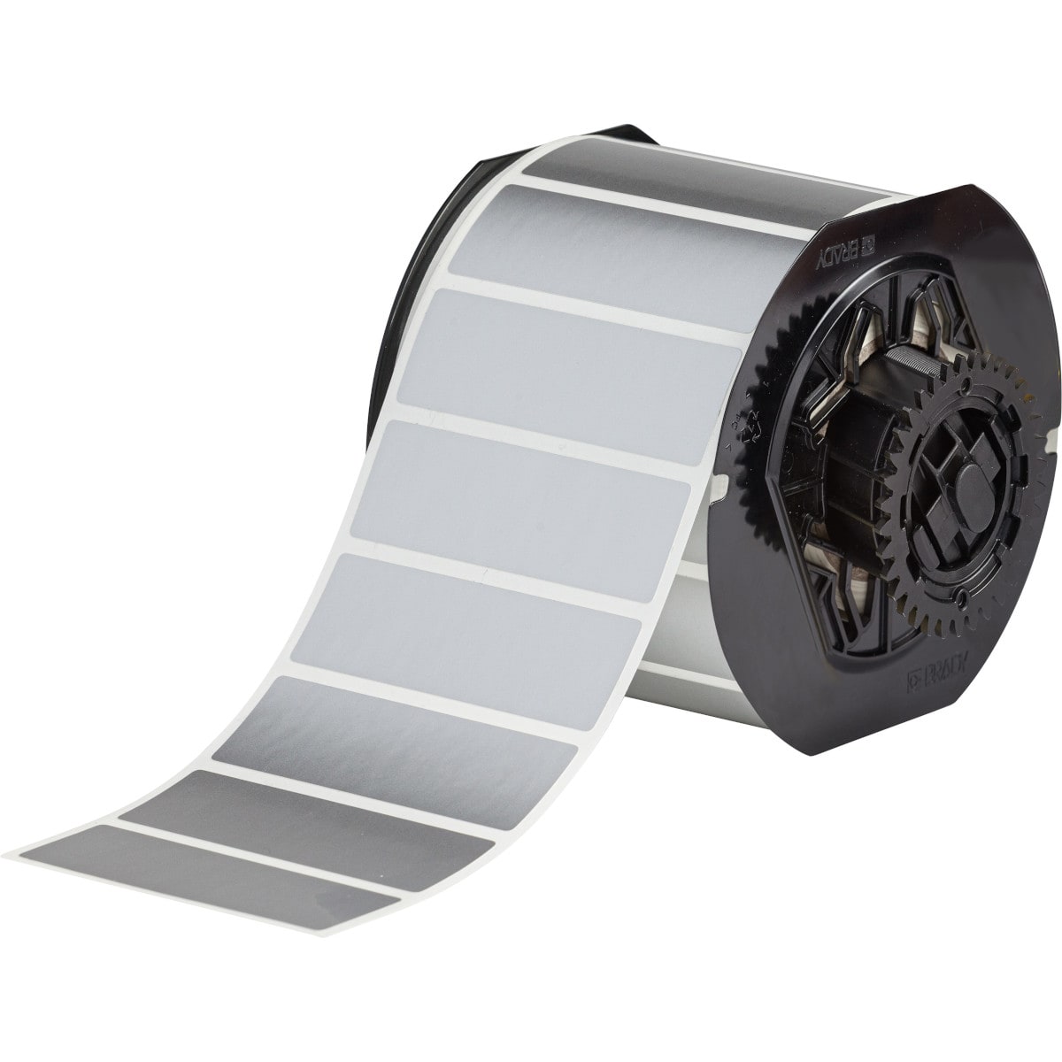 Il poliestere non metallico (B-413) è un materiale in poliestere a trasferimento termico con una finitura dall’aspetto metallico. Ideale per la tracciabilità di risorse con codici a barre e applicazioni con targhe di identificazione., Il materiale con rivestimento superiore grigio chiaro con adesivo permanente aderisce alla maggior parte delle superfici pulite e asciutte, Stampabile a trasferimento termico, UL approved, Temperatura di utilizzo da -56 a 43 °C (da -70 a 110 °F), Per stampare questo materiale, serve un nastro. Usare il codice prodotto B30-R6000