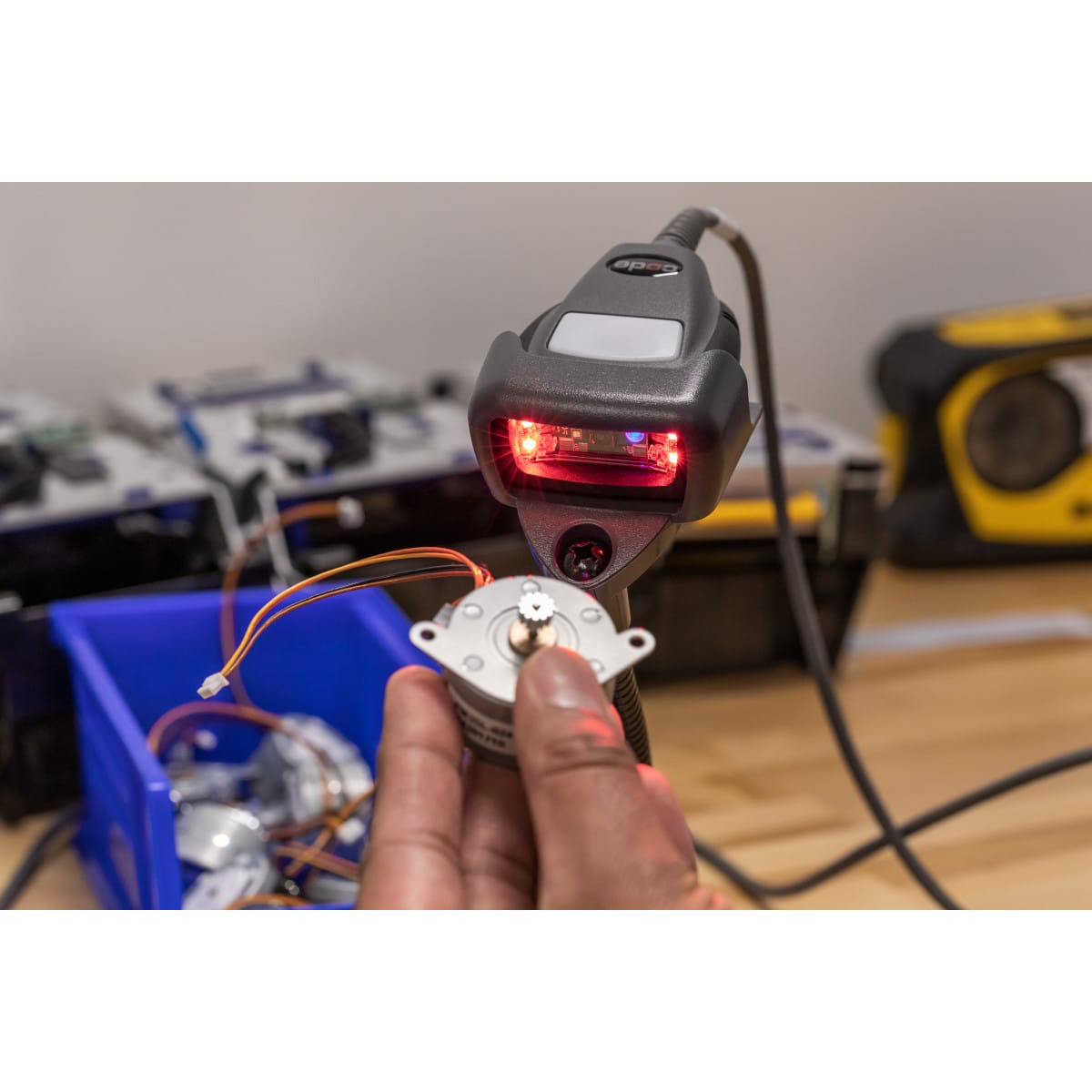 I lettori cablati sono dotati di una funzione di rilevamento automatico che, una volta posizionati nel supporto, imposta automaticamente il lettore in modalità di scansione continua. In questa modalità, è sufficiente posizionare un codice a barre sotto i LED per decodificarlo. Quando il lettore non è nel supporto, la scansione può essere attivata premendo il pulsante., Costruito per soddisfare le tue esigenze e per mantenere le tue apparecchiature al sicuro e organizzate. Leggero per la massima produttività