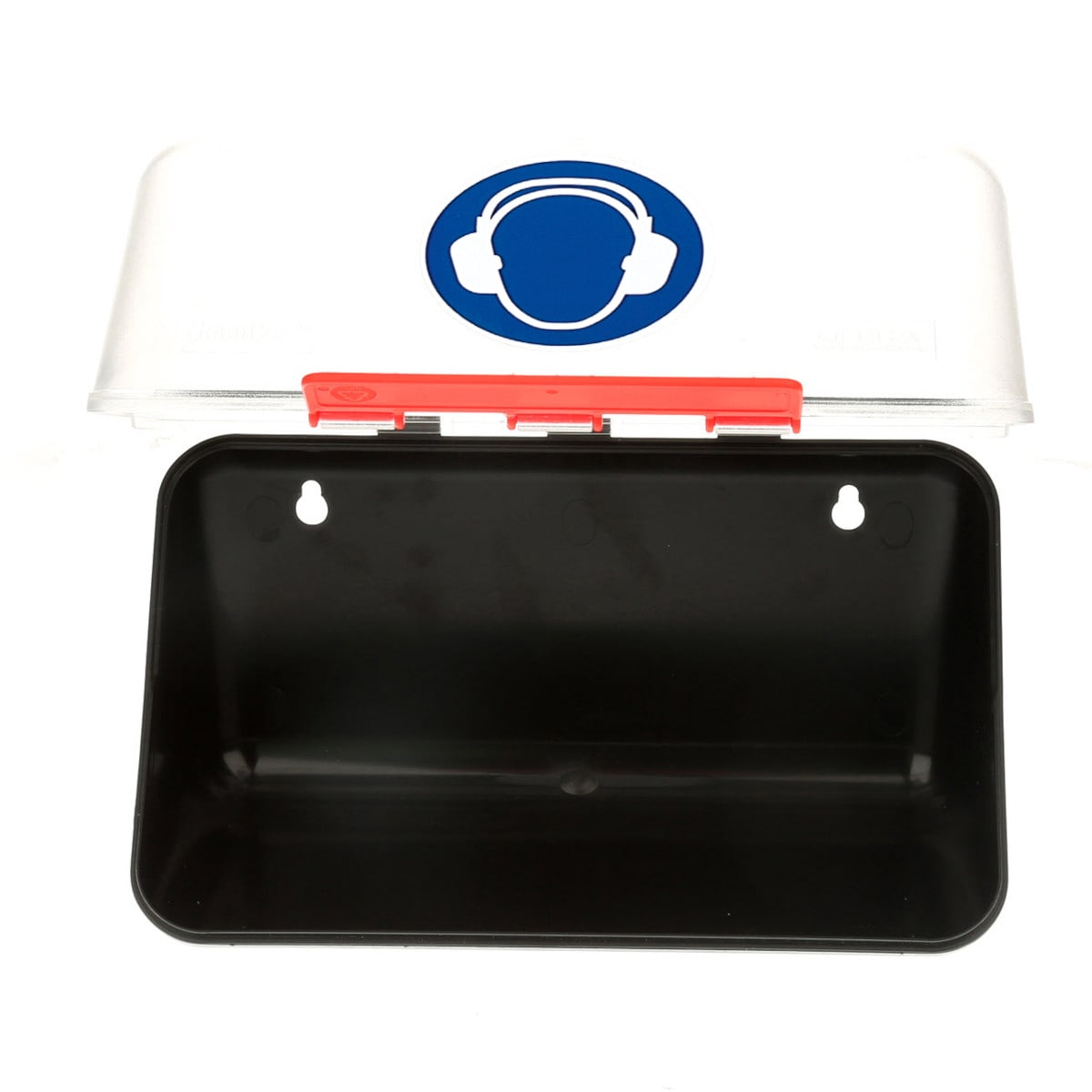 I dispenser consentono ai lavoratori di accedere rapidamente ai dispositivi di protezione individuale, Proteggi i tuoi DPI da sporco, umidità e polvere, Dispenser a pavimento o a parete, Con pittogramma ISO-7010 M003 È obbligatorio indossare protezioni per le orecchie