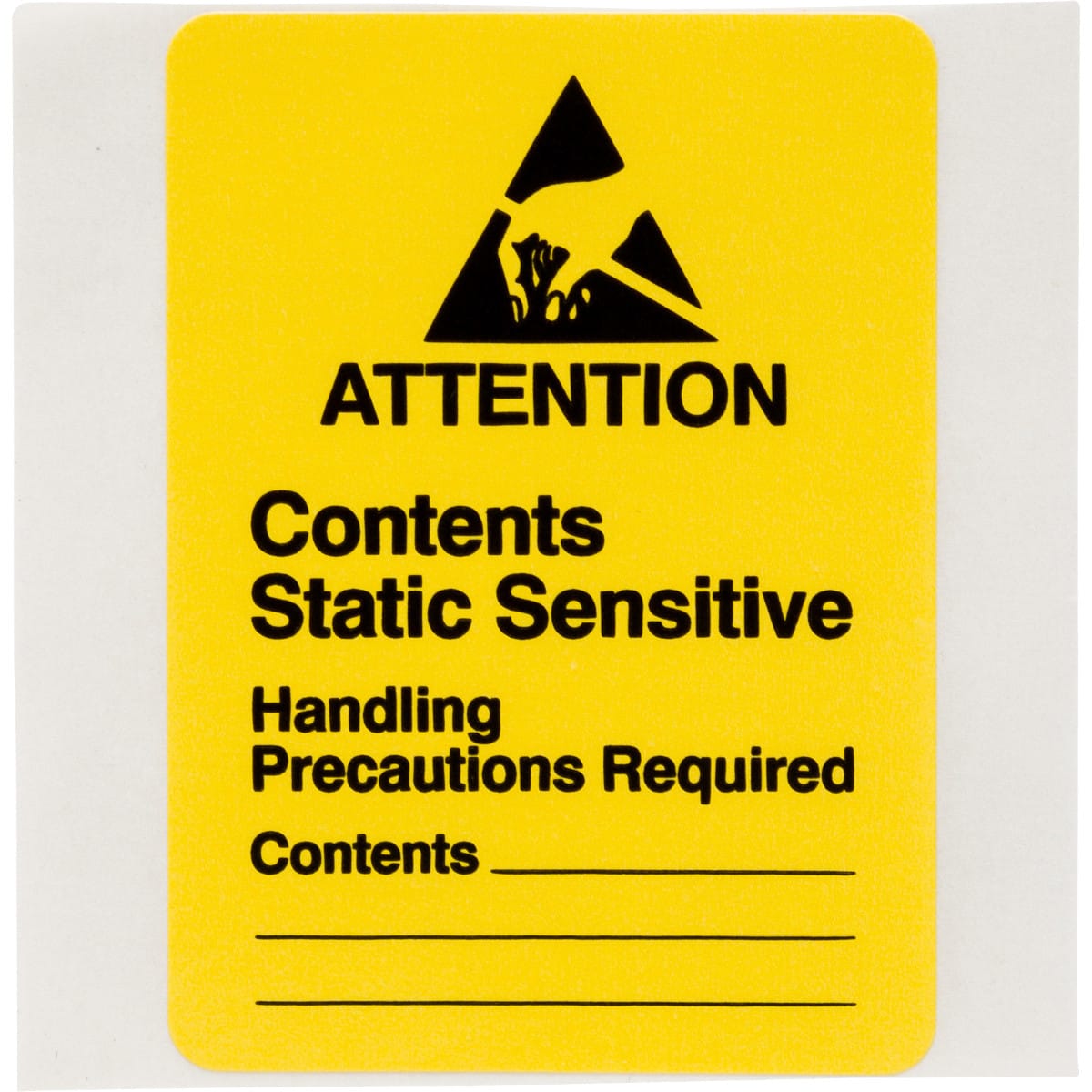 Queste etichette di sicurezza elettrostatica in rotolo segnalano a operatori e utilizzatori di dispositivi elettronici il rischio di danni provocati da scariche elettrostatiche. Simboli conformi allo standard miliare 129J e allo standard EIA (Electronics Industries Association) 471.