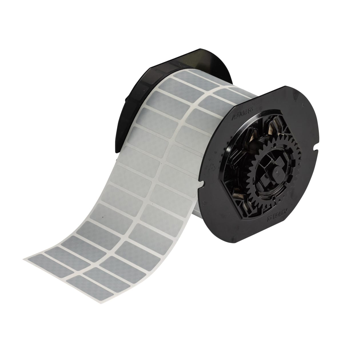 Le etichette in poliestere metallizzato B-438 sono dotate di un adesivo permanente che lascia un’impronta a scacchiera se rimosse., Prodotto studiato per targhe serializzate e targhe di identificazione che richiedono sia alte prestazioni sia protezione dalla rimozione, Ideale per l’etichettatura di prodotti, la tracciabilità di risorse e l’identificazione industriale generale, Resiste a solventi e variazioni di temperatura, Va manipolato il meno possibile per evitare che venga esposta prematuramente l’impronta a scacchiera, Per stampare questo consumabile, serve un nastro. Usa il codice prodotto B30-R4300