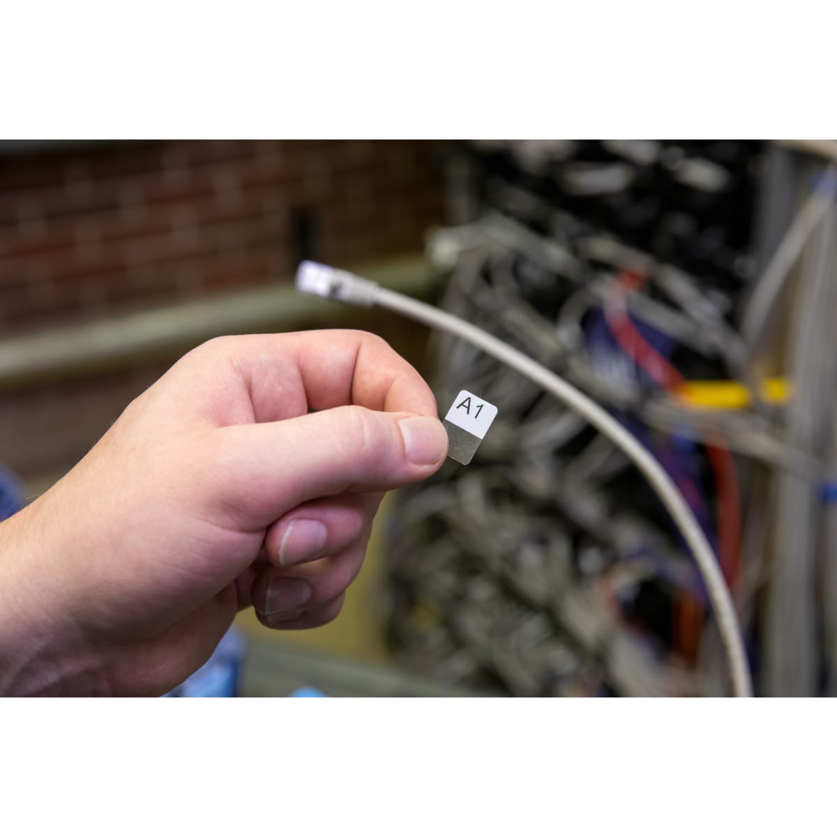 Le nostre etichette per fili e cavi più utilizzate. Consumabile conformabile studiato per aderire a superfici particolarmente curve, fili e cavi. È caratterizzato da una superficie bianca stampabile con una “coda” trasparente che si avvolge attorno all'etichetta. La coda trasparente funge da sovralamina per proteggere il testo, conferendo all’etichetta una resistenza superiore ad abrasione, sporco, oli, solventi, acqua e manipolazione continua