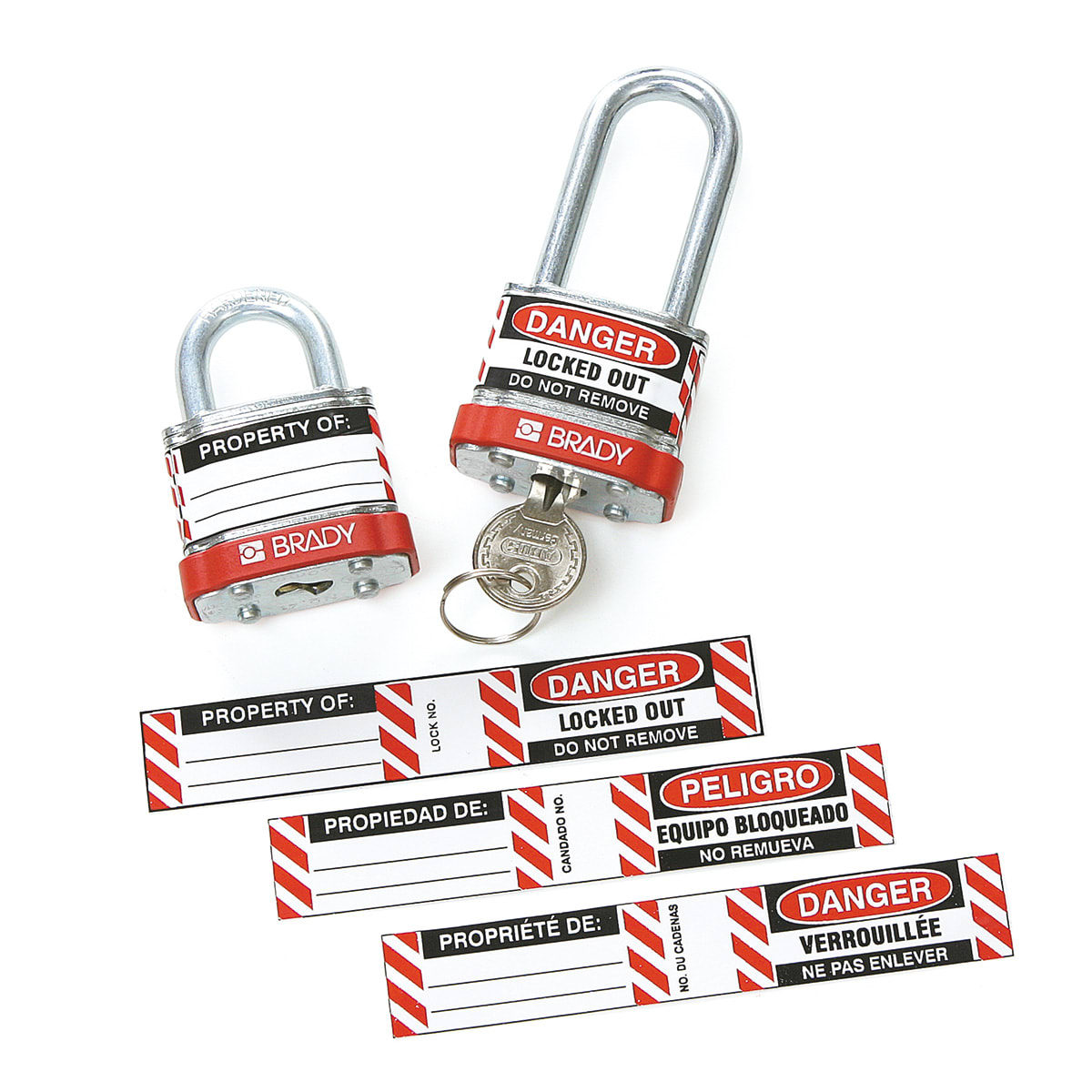 Le etichette per lucchetti in acciaio contribuiscono a trasmettere un messaggio chiaro agli operatori quando un macchinario è sottoposto a interventi di riparazione o manutenzione. Le etichette, realizzate in vinile resistente, sono fornite con pellicole sovralaminate B–674 per aumentarne la durata. Sulla superficie scrivibile è possibile utilizzare matite, penne o pennarelli.