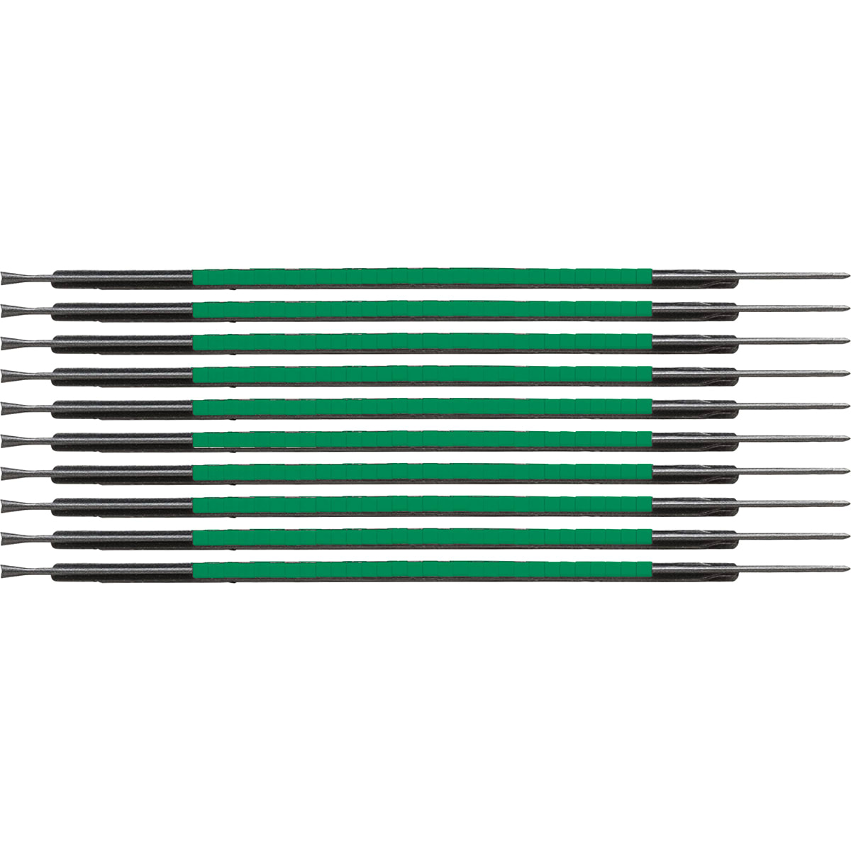 Applicare un marcatore per fili e cavi ClipSleeve™ è semplice con il nostro speciale applicatore Quik-Wand™ incluso in ogni confezione. Basta posizionare la parte terminale svasata della bacchetta sul filo e spingere il marcatore verso il filo. Il marcatore fessurato con sistema di bloccaggio a zigzag si aggancia sul filo, senza più scivolare o scorrere. Marcatori a clip colorati, vuoti.