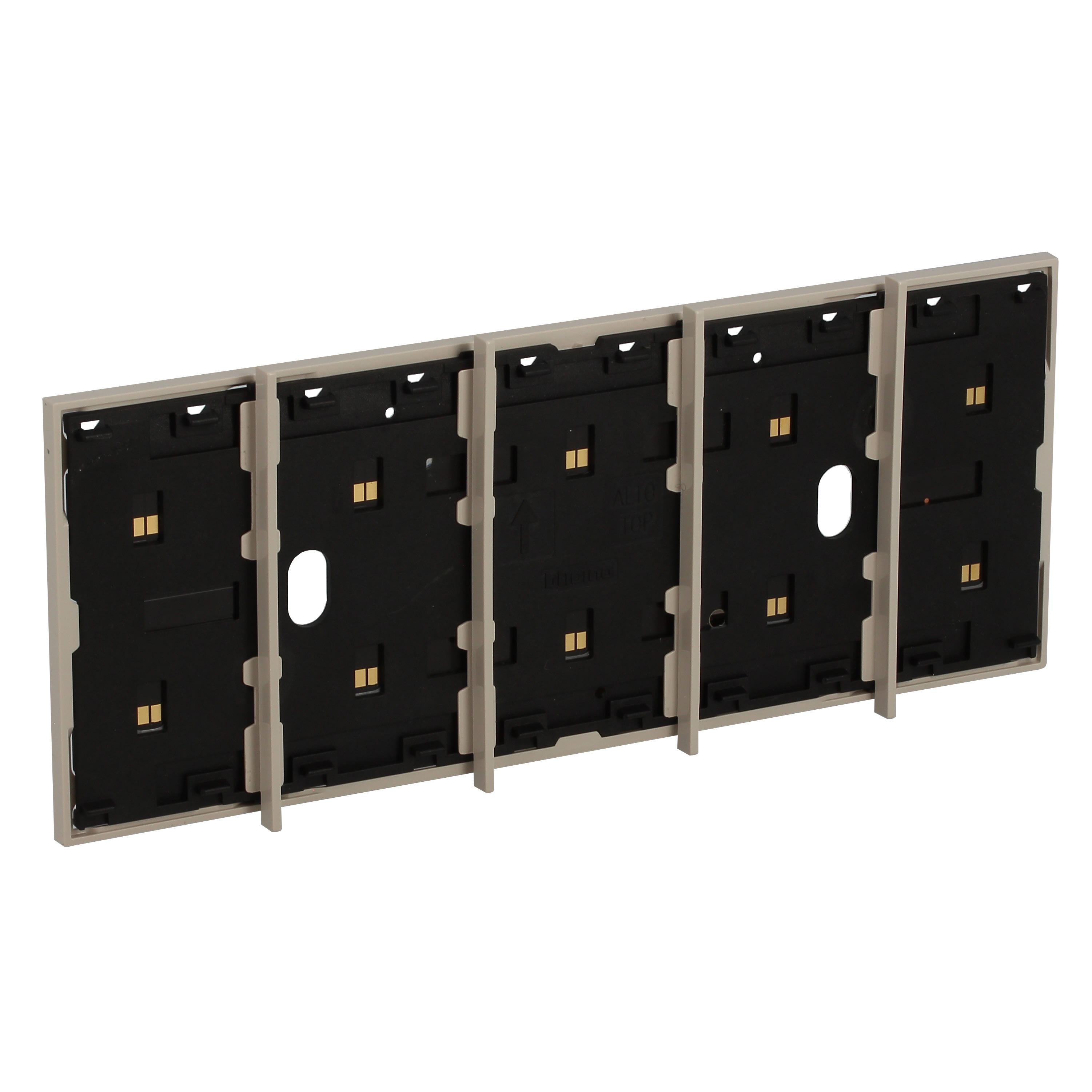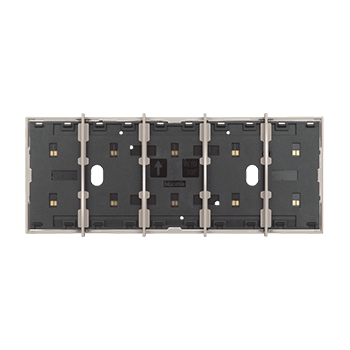 Frame elettrificato con barrette estetiche (rimovibili) di divisione tra i comandi. Per l’installazione di max. 5 comandi digitali o cover art. KW/KG/KM8100. Installazione in scatola da 4 moduli con supporto K4704. Colore sabbia.