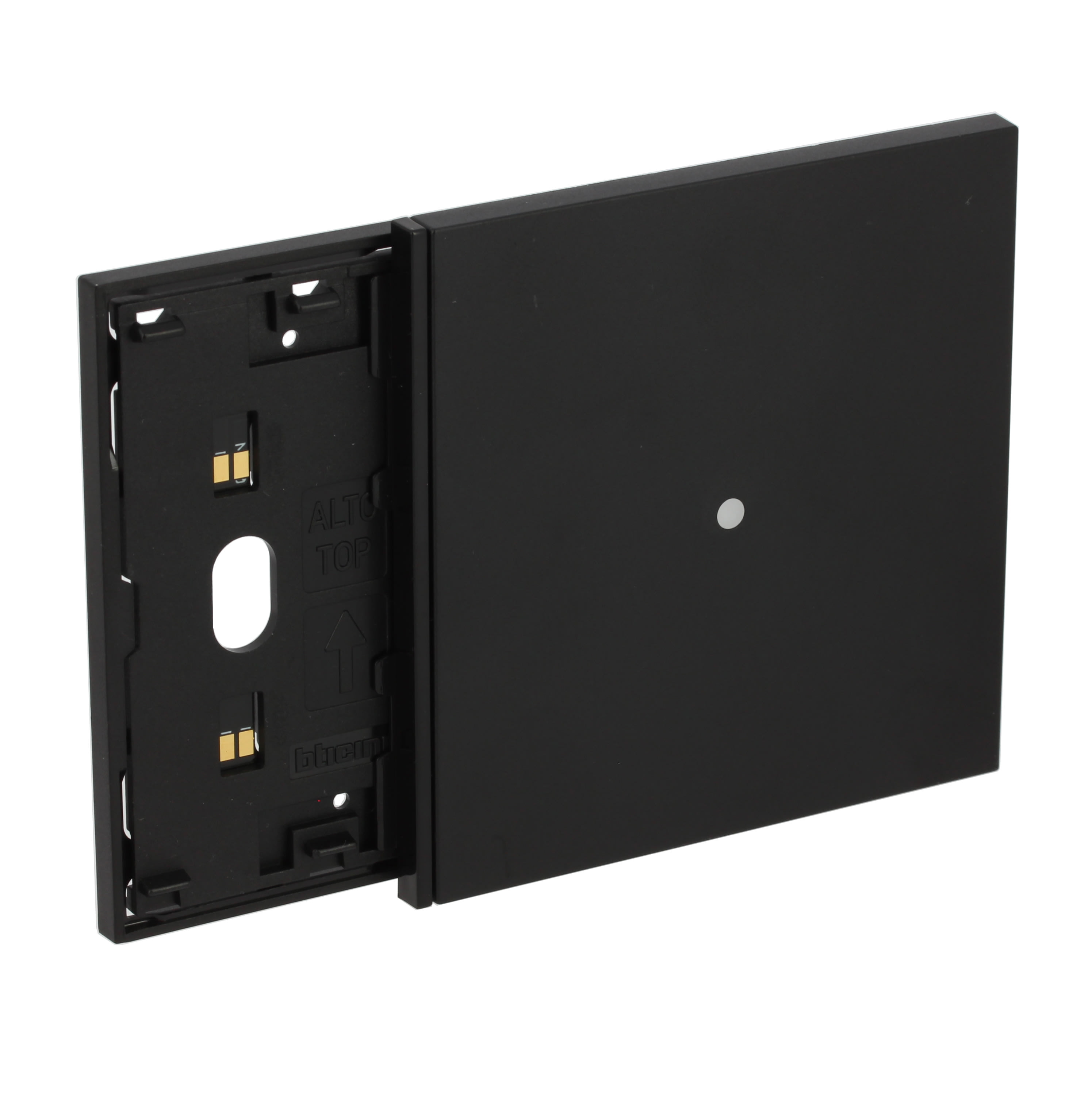 Frame elettrificato con mostrina lettore antifurto, per l’installazione di 1 comando digitale e del lettore antifurto (art. K4215). Installazione in scatola da 3 moduli con supporto K4703. Colore nero.