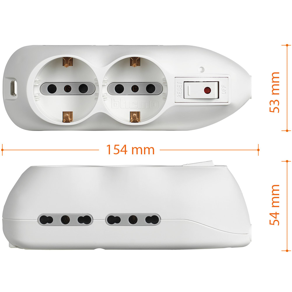 BTICINO - Multipresa con 4 prese 2P+T bipasso 10/16A bianca 3695DB