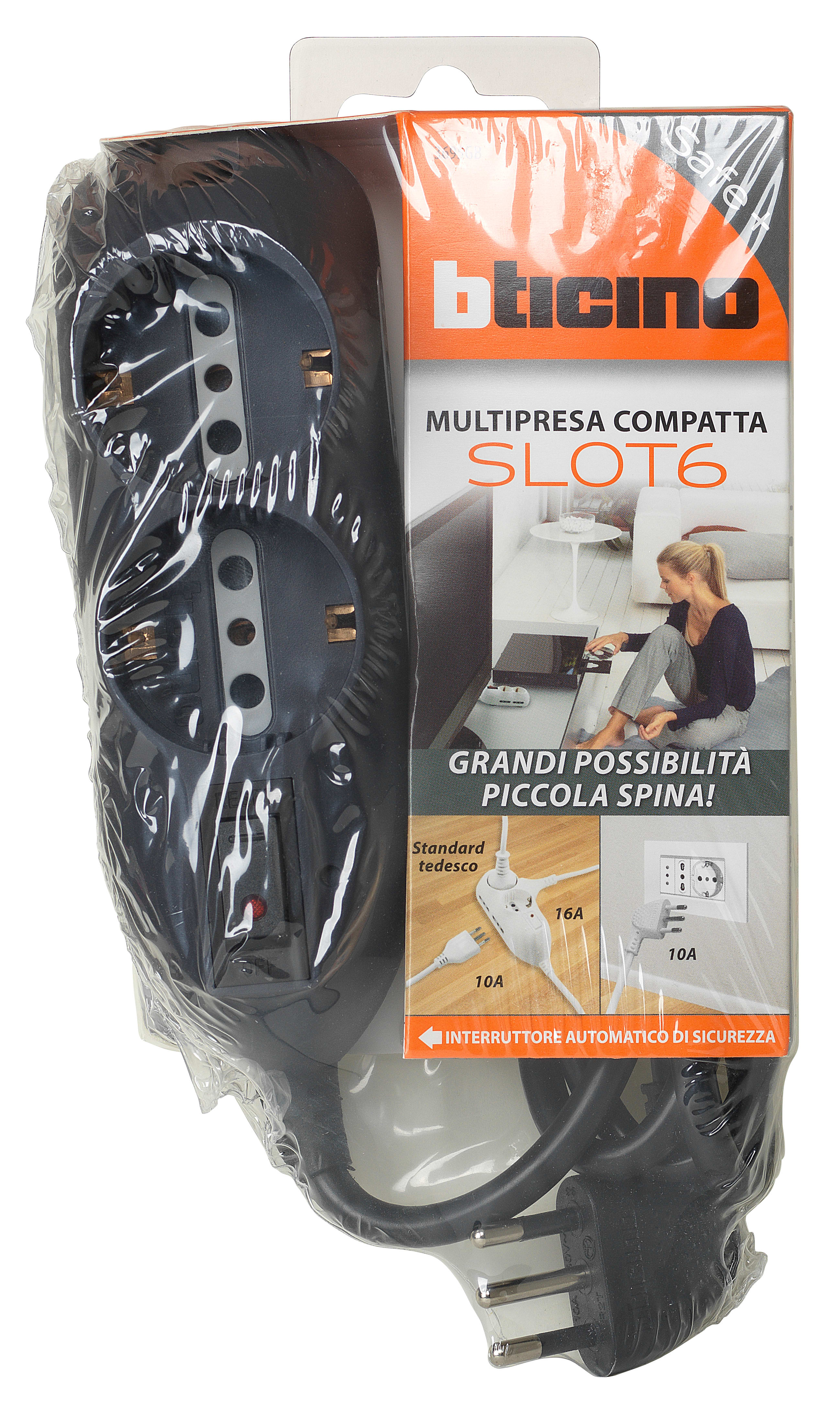 BTICINO - Multipresa con 4 prese 2P+T bipasso 10/16A - grigia 3695GB