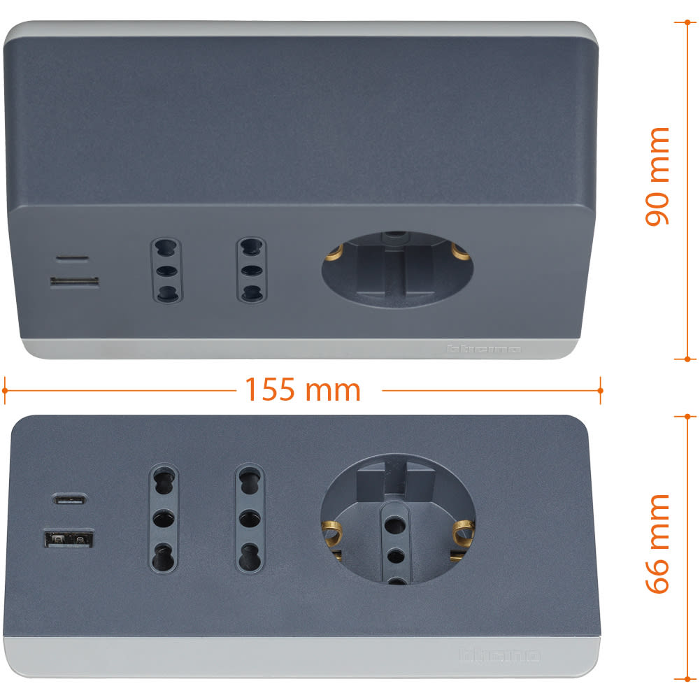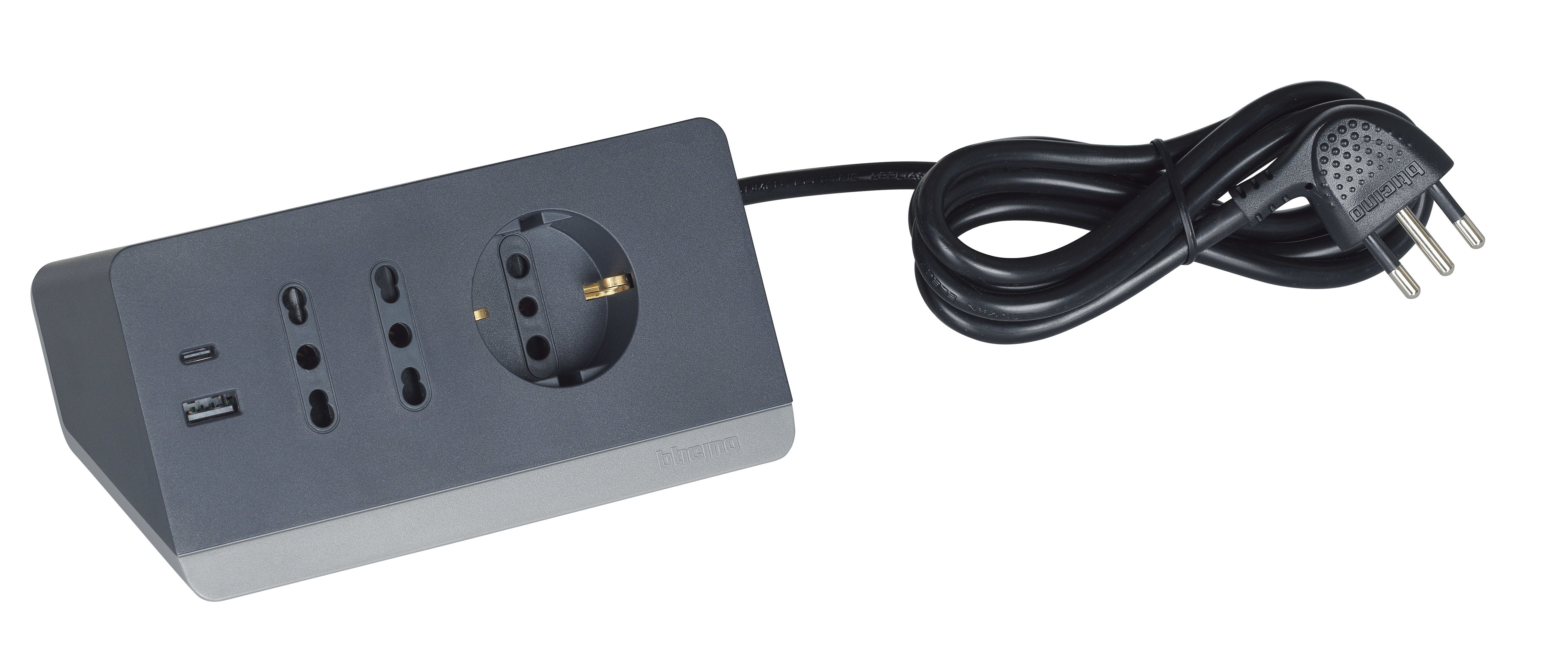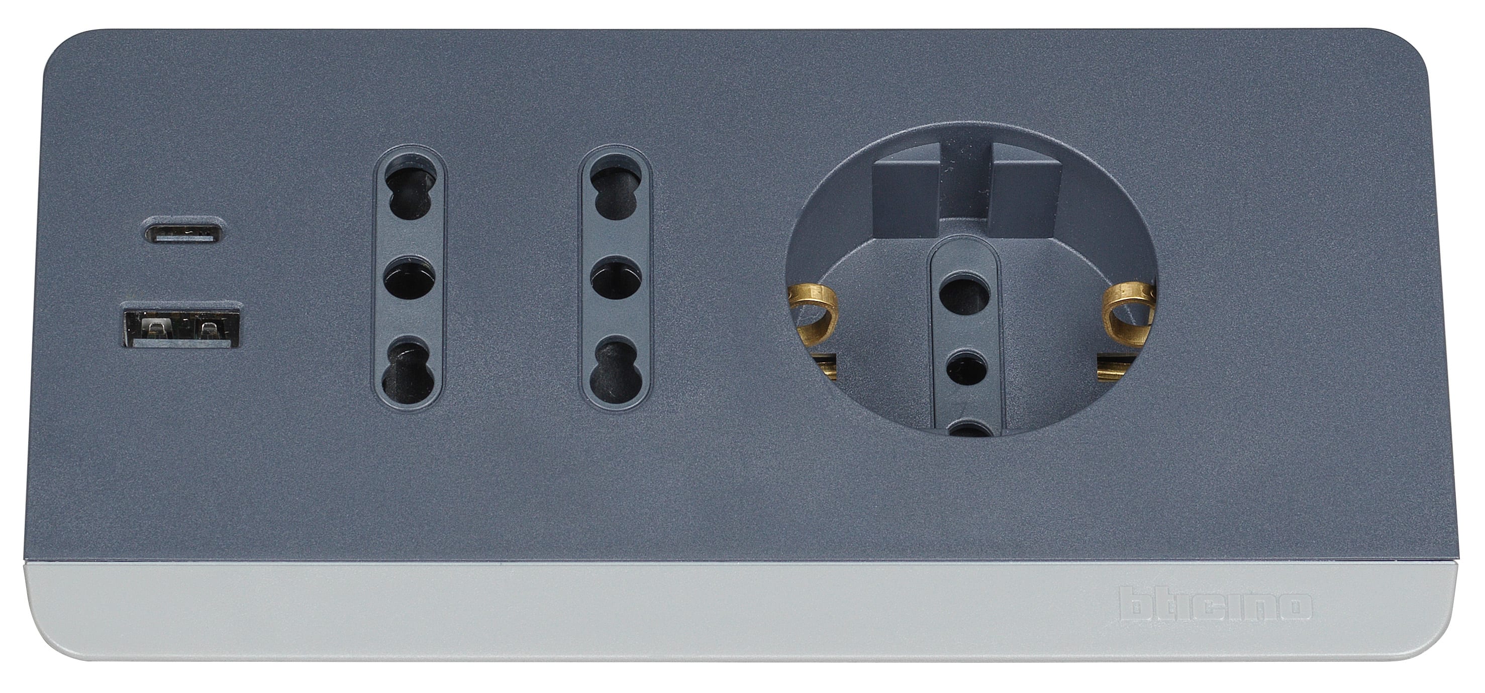 BTICINO - Multipresa da scrivania con 2 prese USB tipo A+C - grigia S3711GBU