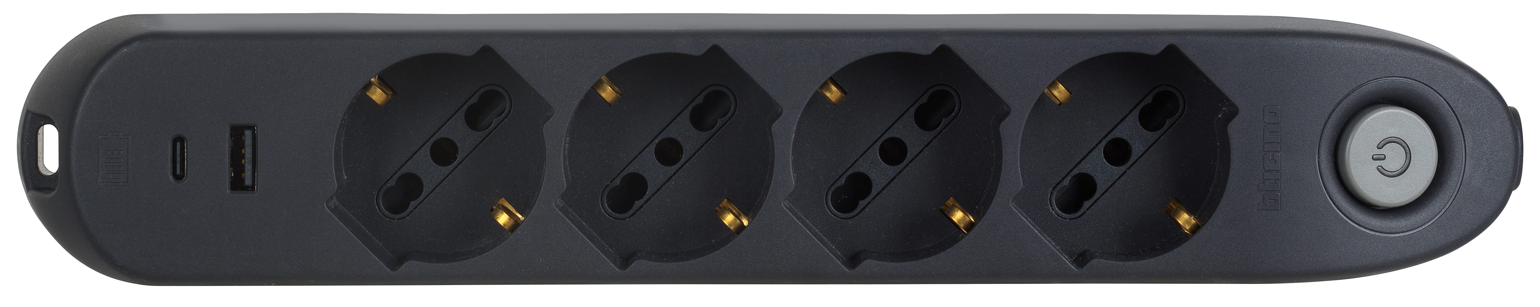 BTICINO - Multipresa POKER 4 prese con 2 prese USB, interruttore di sicurezza - grigia 3684GBU