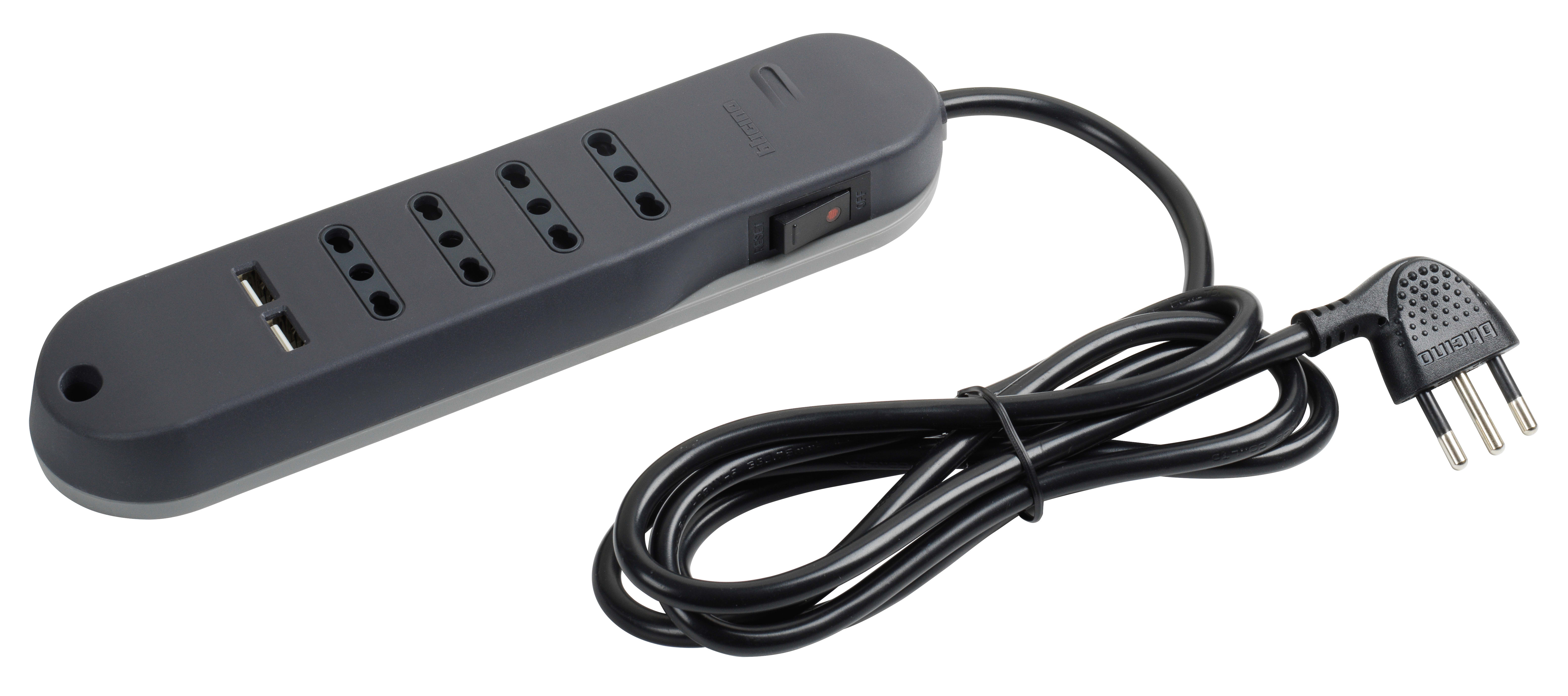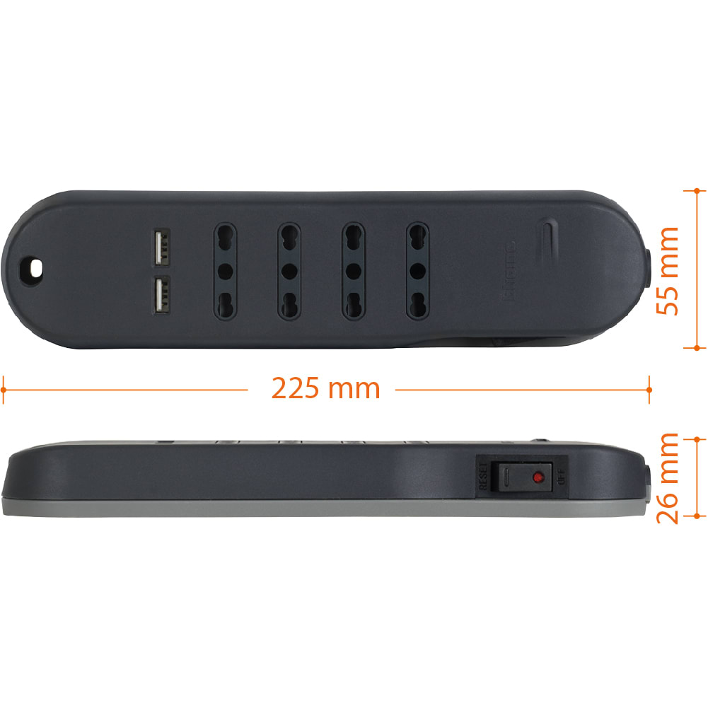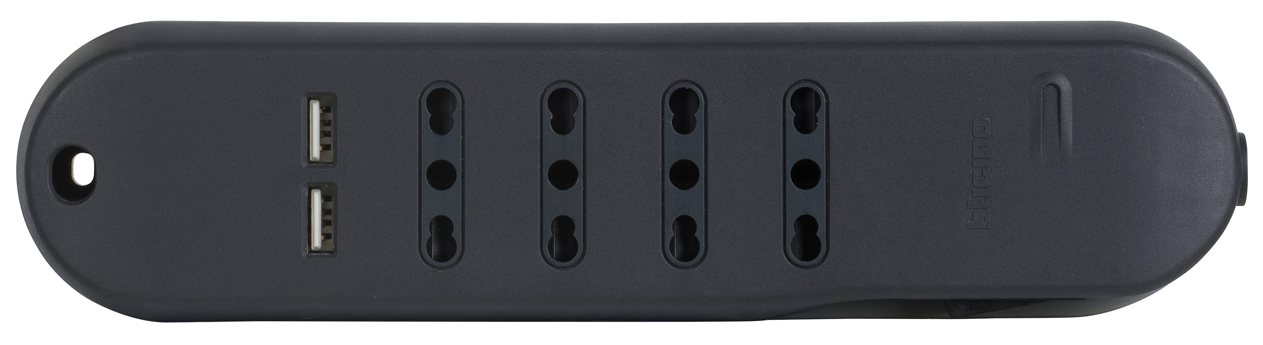 BTICINO - Multipresa SLIM bipasso con 2 prese USB, interruttore safe e cavo - grigia 3636GBU