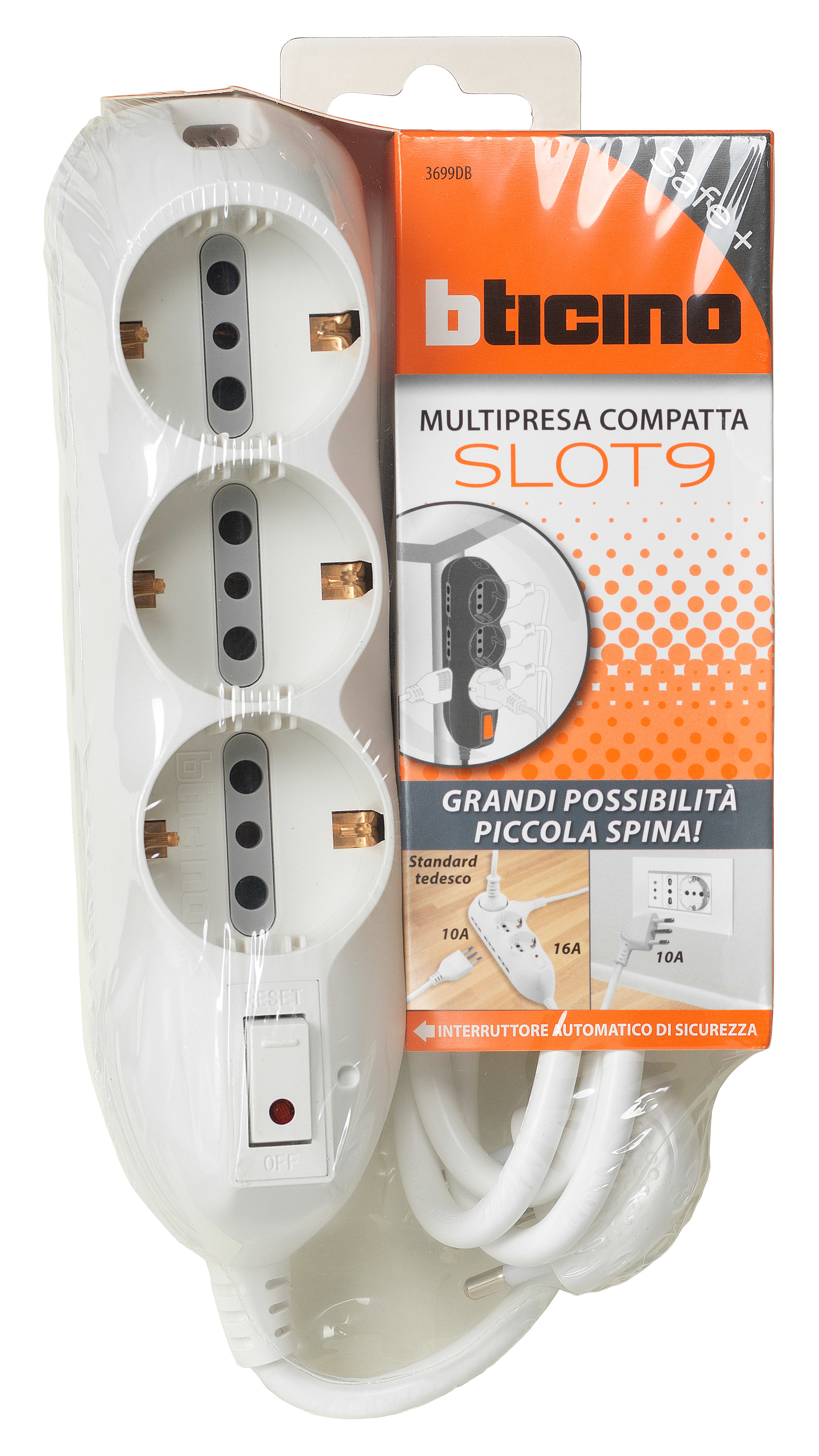 BTICINO - Multipresa Slot9 - 6 prese 2P+T bipasso 10/16A - bianco 3699DB