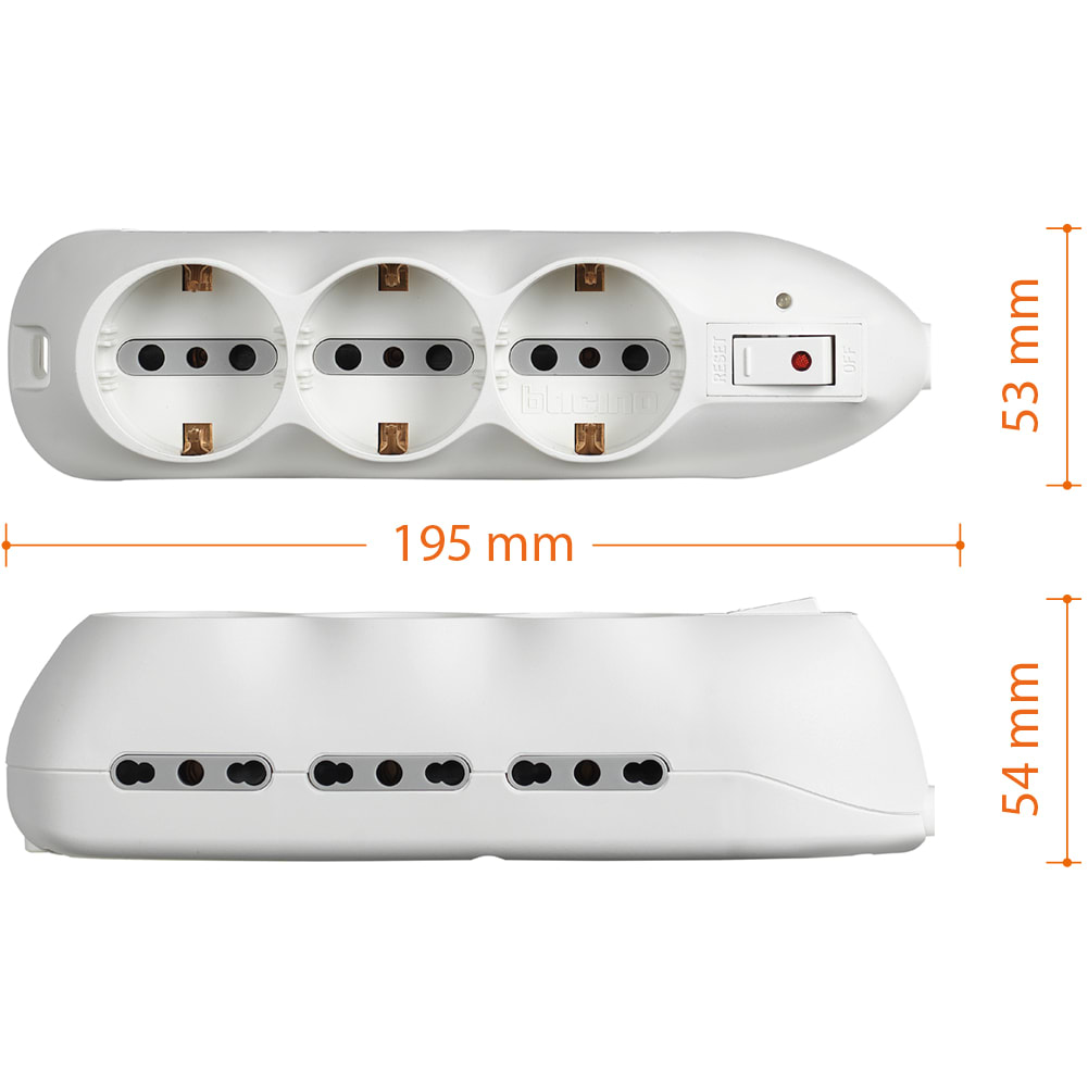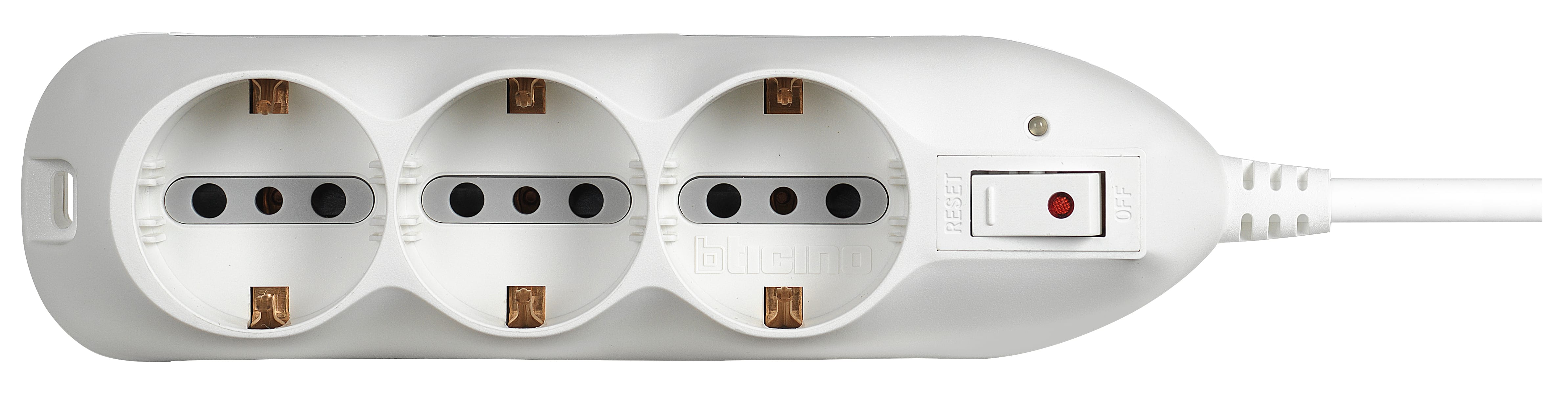 BTICINO - Multipresa Slot9 - 6 prese 2P+T bipasso 10/16A e salvafulmine - bianca 3699DBF