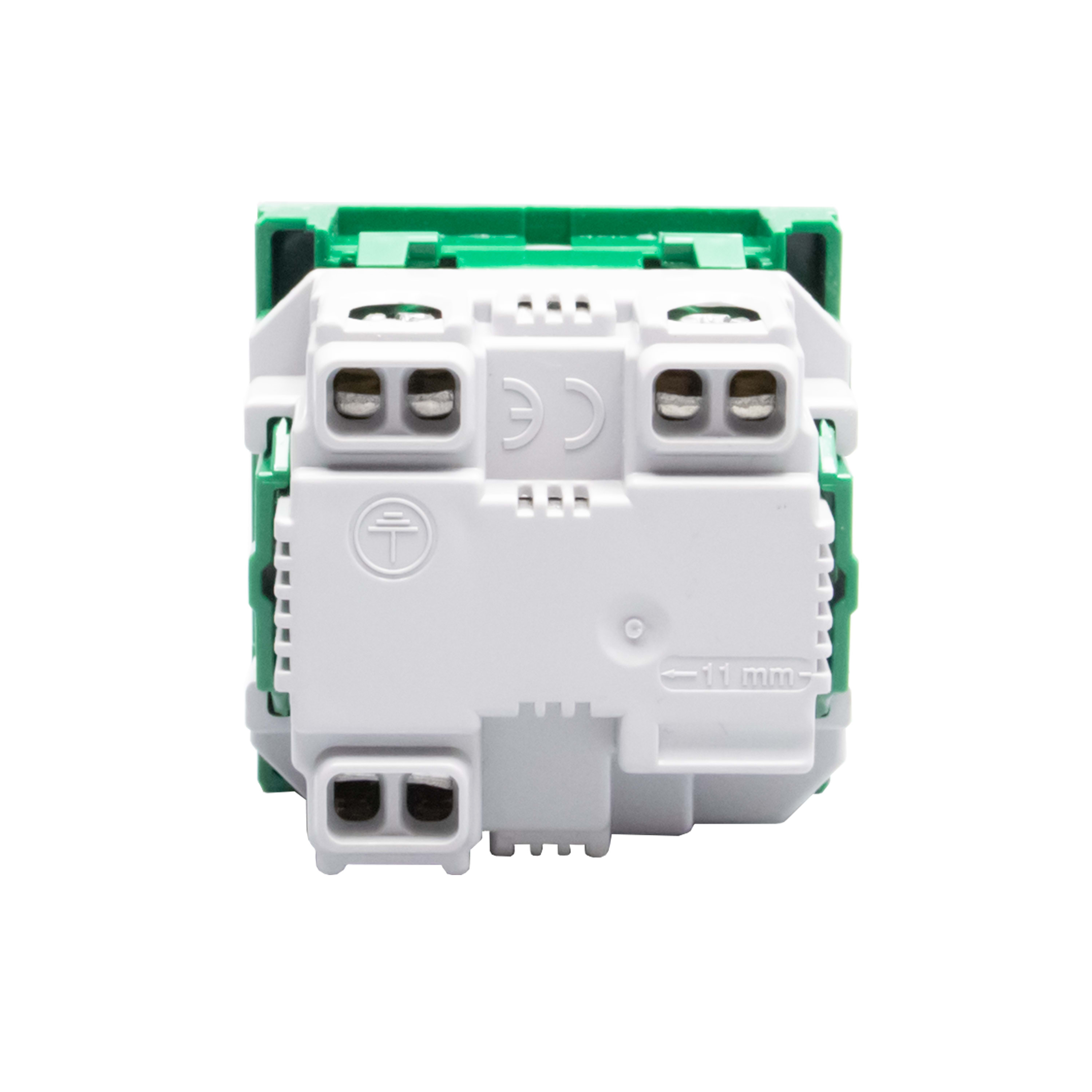 Presa standard Italia P40 2 P+T 16 A 250 Va.c. - interasse 19 mm e 26 mm in configurazione bipasso - alveoli protetti; contatti laterali di terra per spine standard tedesco; adatta per spine standard Italia 2 P e 2 P+T 10/16 A, spine standard tedesco 2 P+T 16 A - 2 moduli - verde