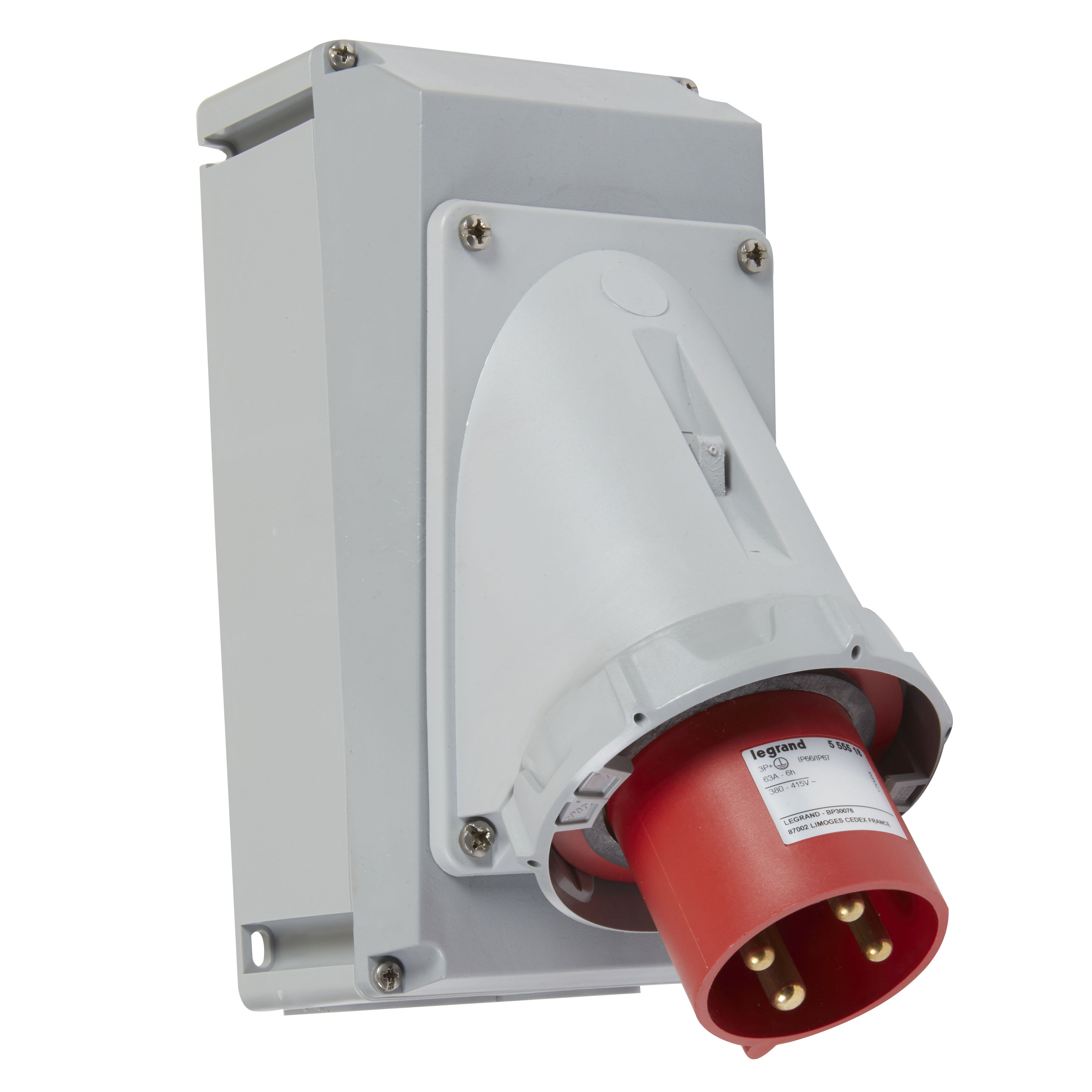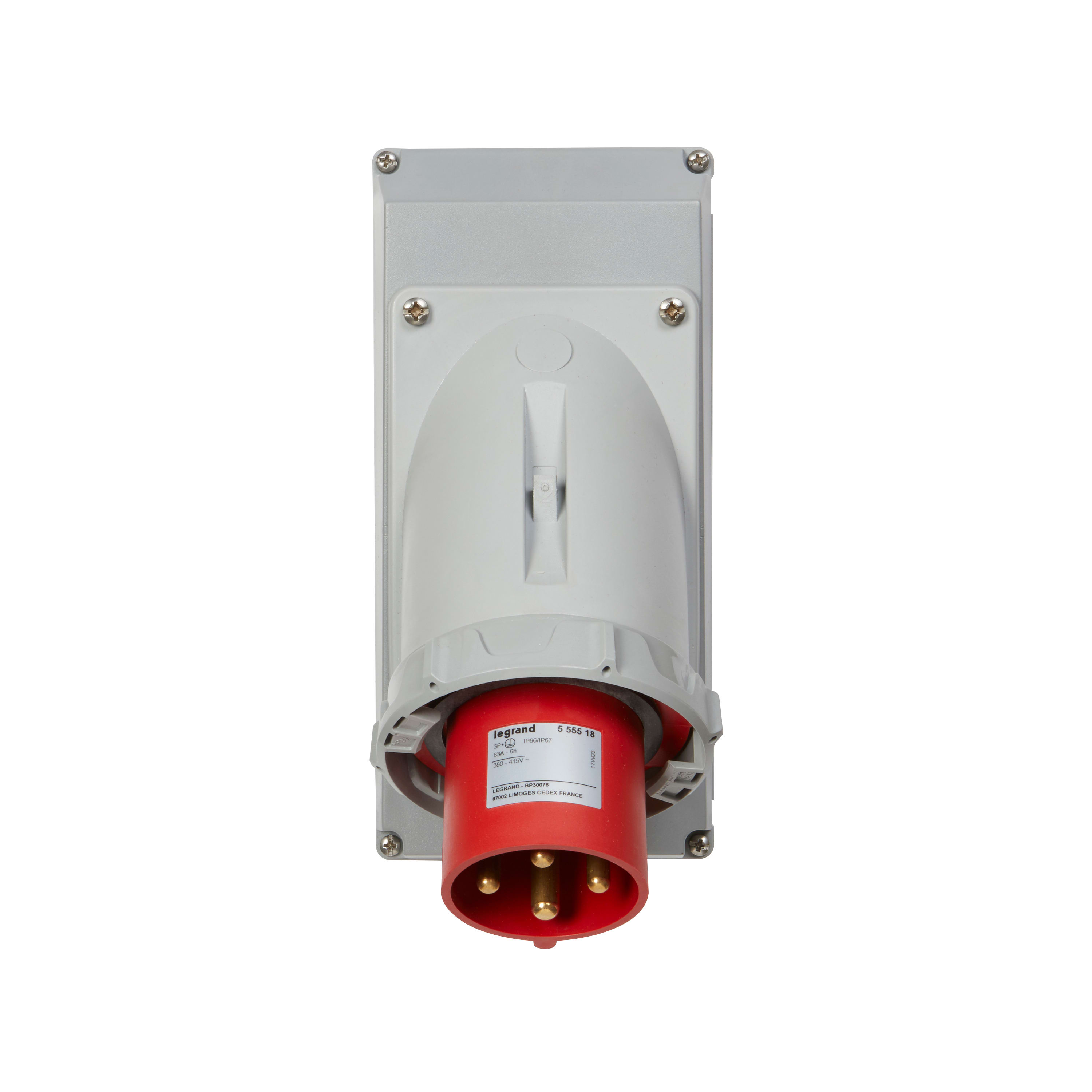 Spina da pannello 3P+T, IP66/67, IK09, In= 63A, Vn=380÷415Vac, rossa.