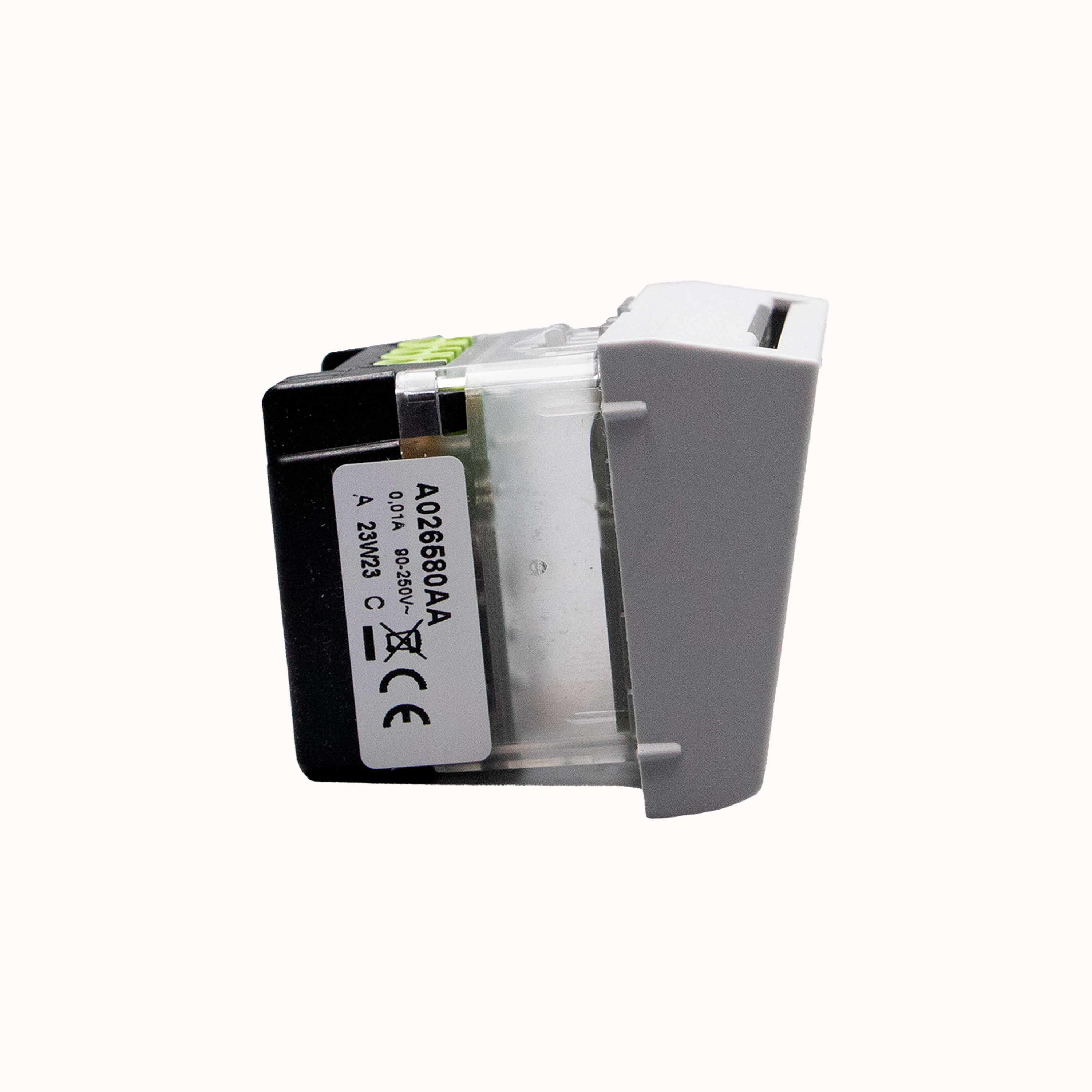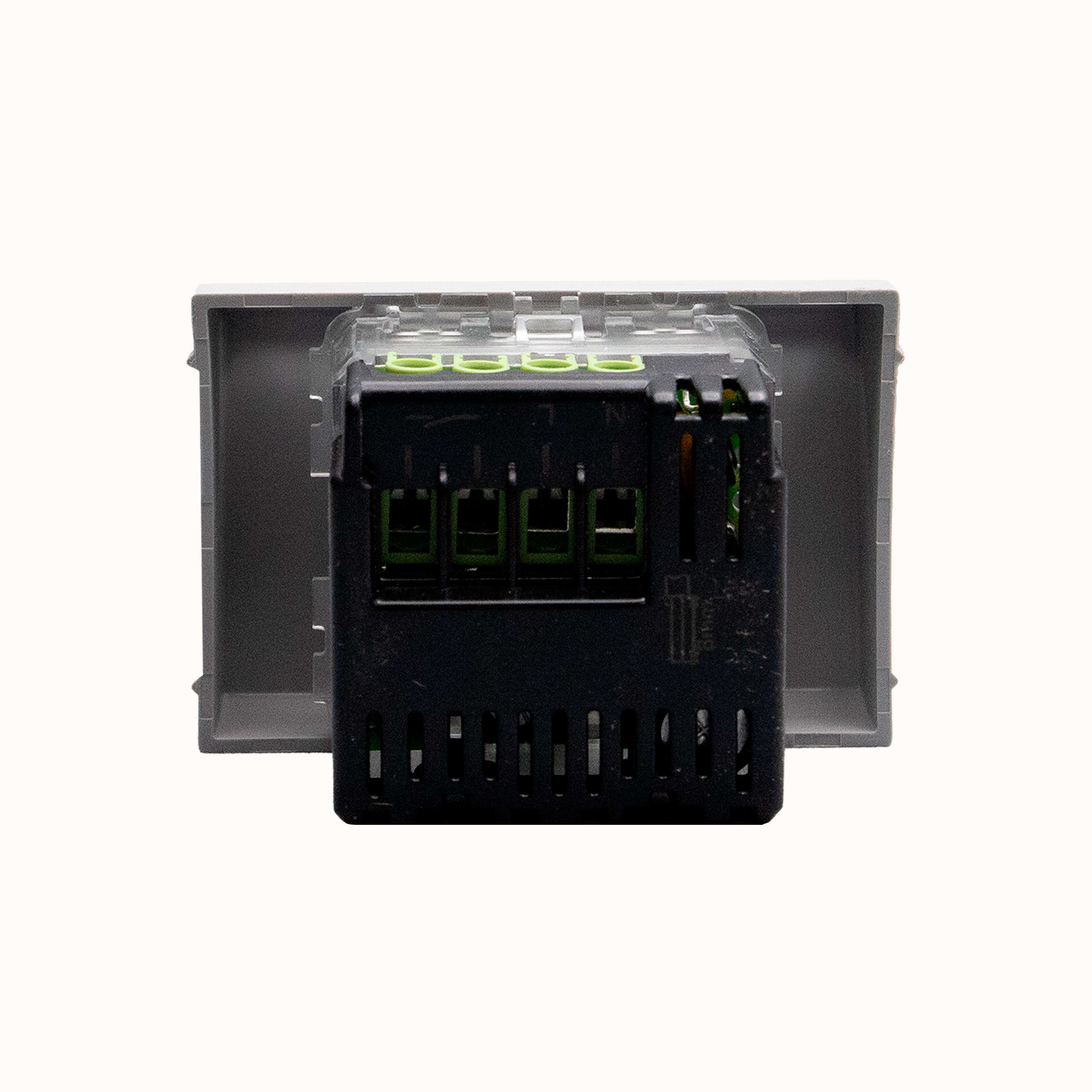 Tasca portabadge per l’alimentazione della camera d’albergo, con riconoscimento tecnologia RFID, fessura illuminata da lampada incorporata - spegnimento ritardato di circa 30 secondi - alimentazione 230 Va.c. - 2 moduli - fornito con mostrina - grigio
