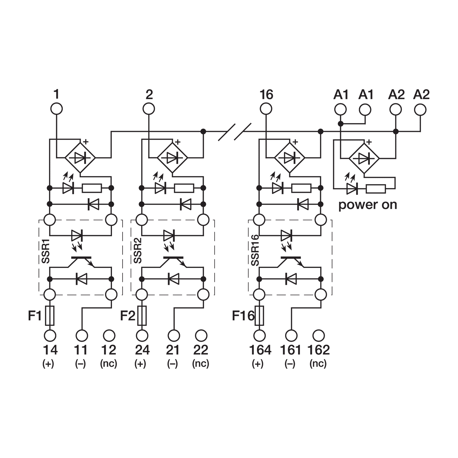 CABUR - Modulo 16 opto 24V/5-50Vdc con 16 rele optoisolati 2A e fusibile. XR161S24F