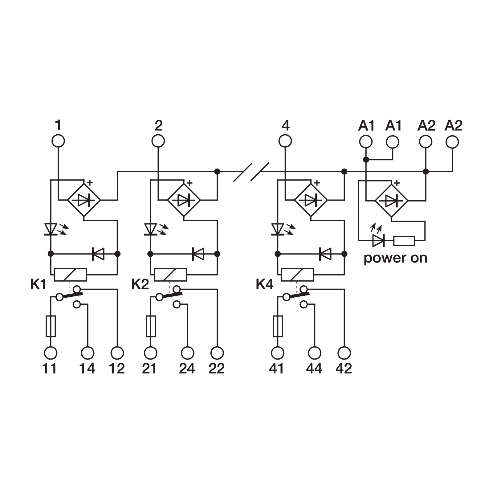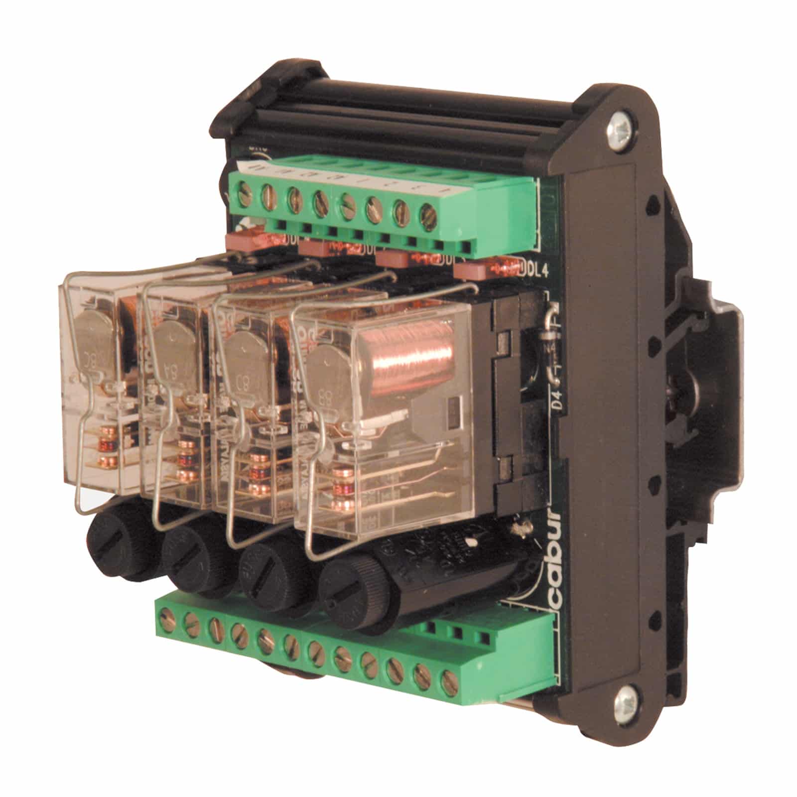 CABUR - Modulo 4 rele elettromeccanico 24V AC/DC SPDT 16A a vite con fusibile. XR041U24F