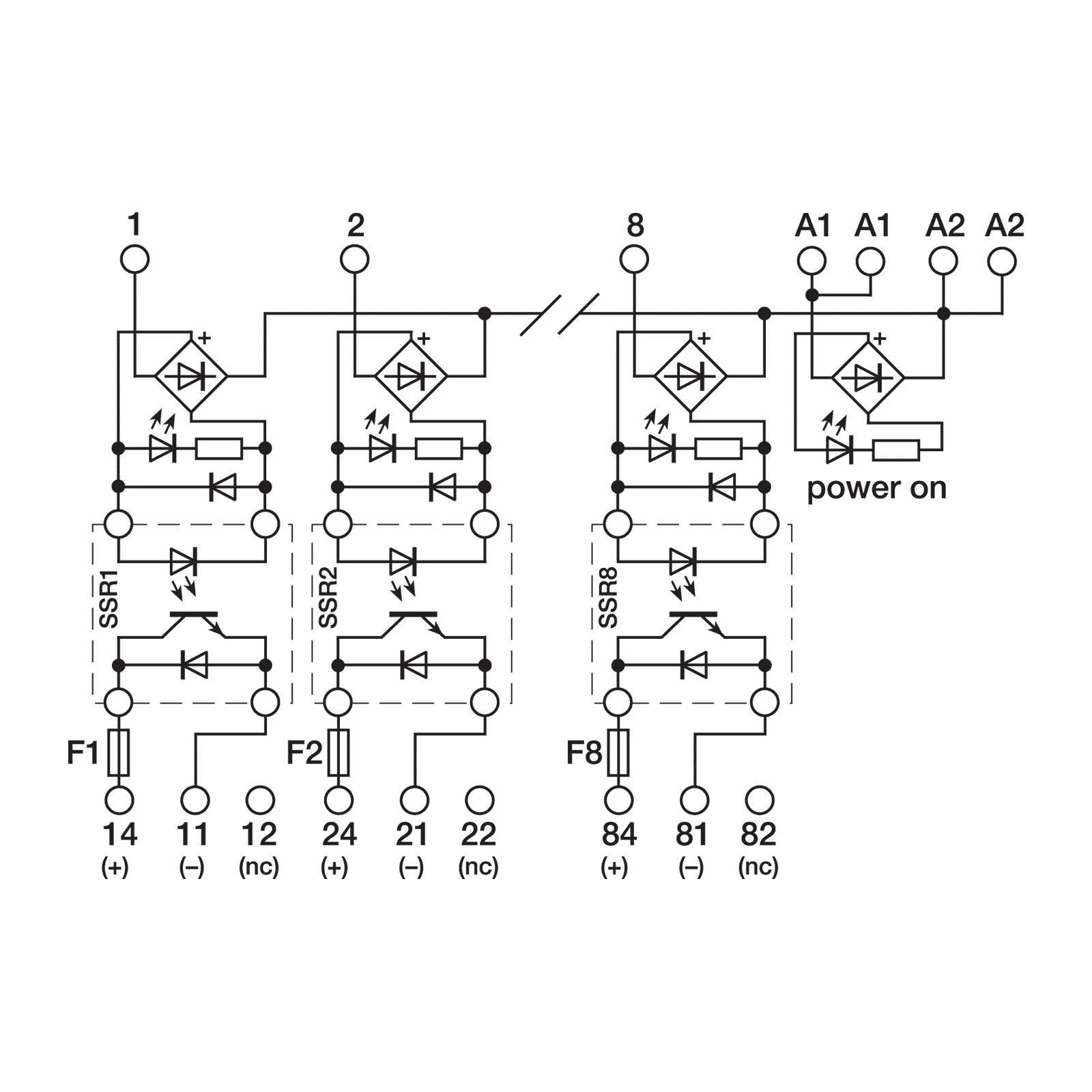 CABUR - Modulo 8 opto 24V/5-50VDC + 8 rele optoisolati 24Vdc/2A con fusibile. XR081S24F