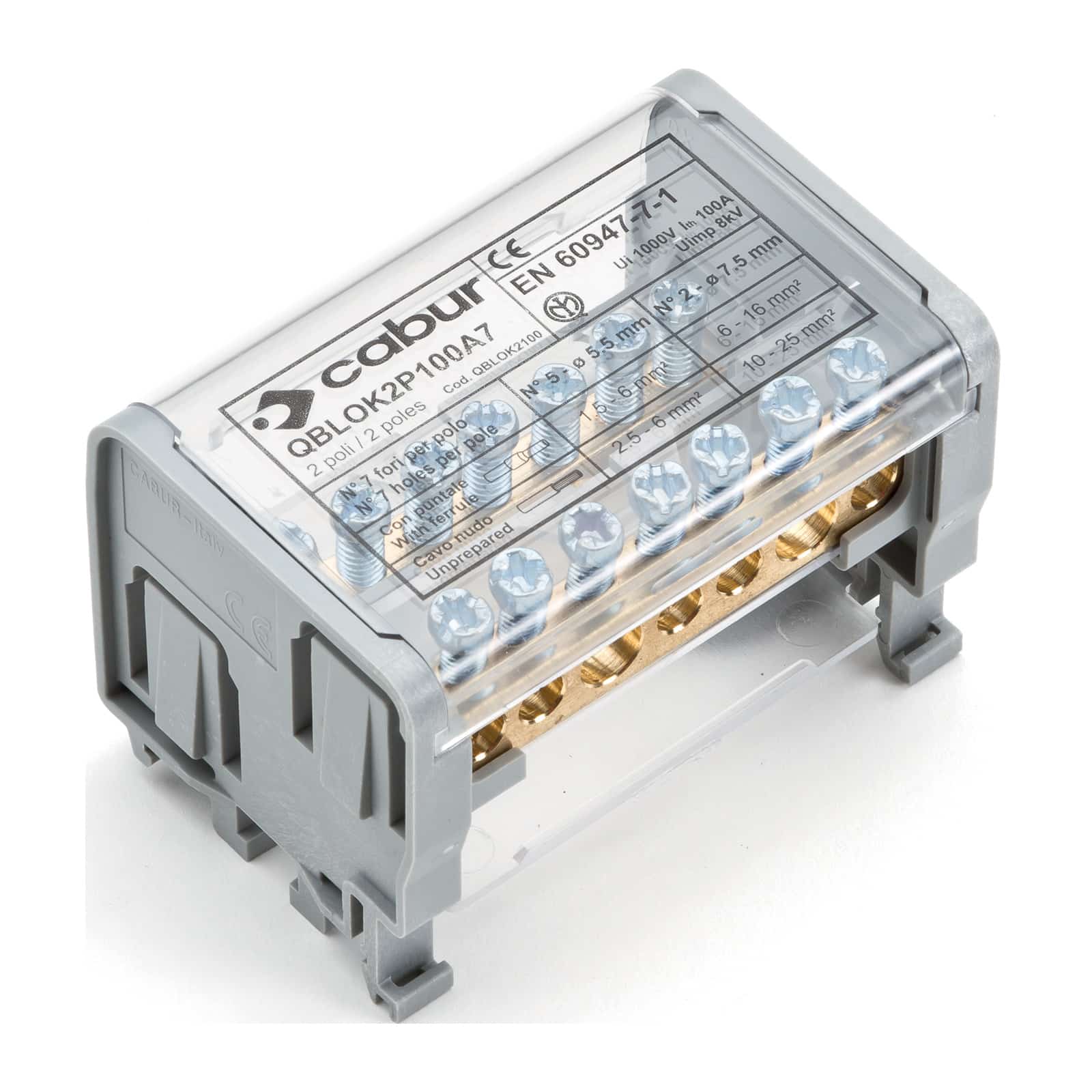 CABUR - Morsettiera 2P 100A 7 fori. QBLOK2100