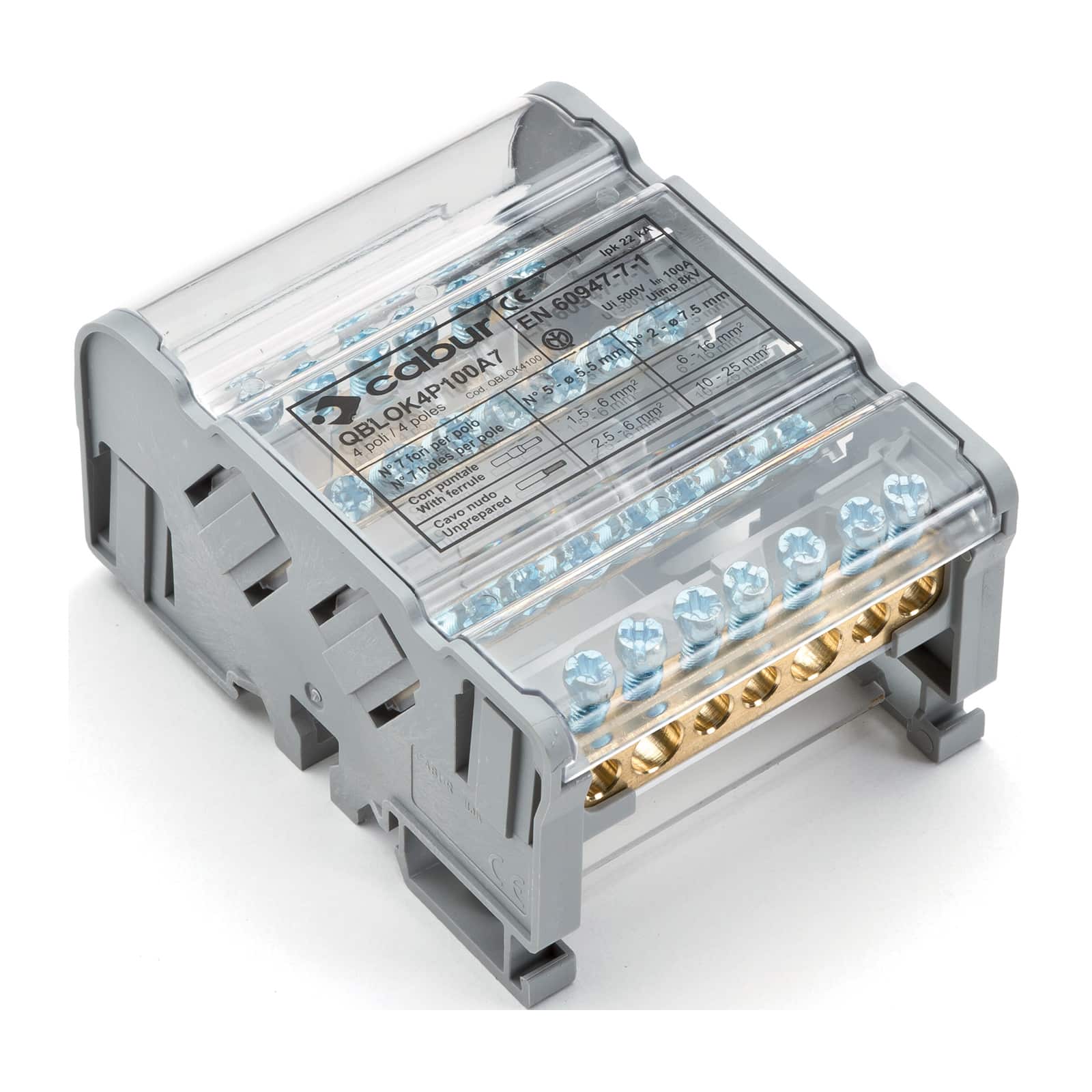 CABUR - Morsettiera quadripolare 100A a 7 fori QBLOK4P100A7F. QBLOK4100