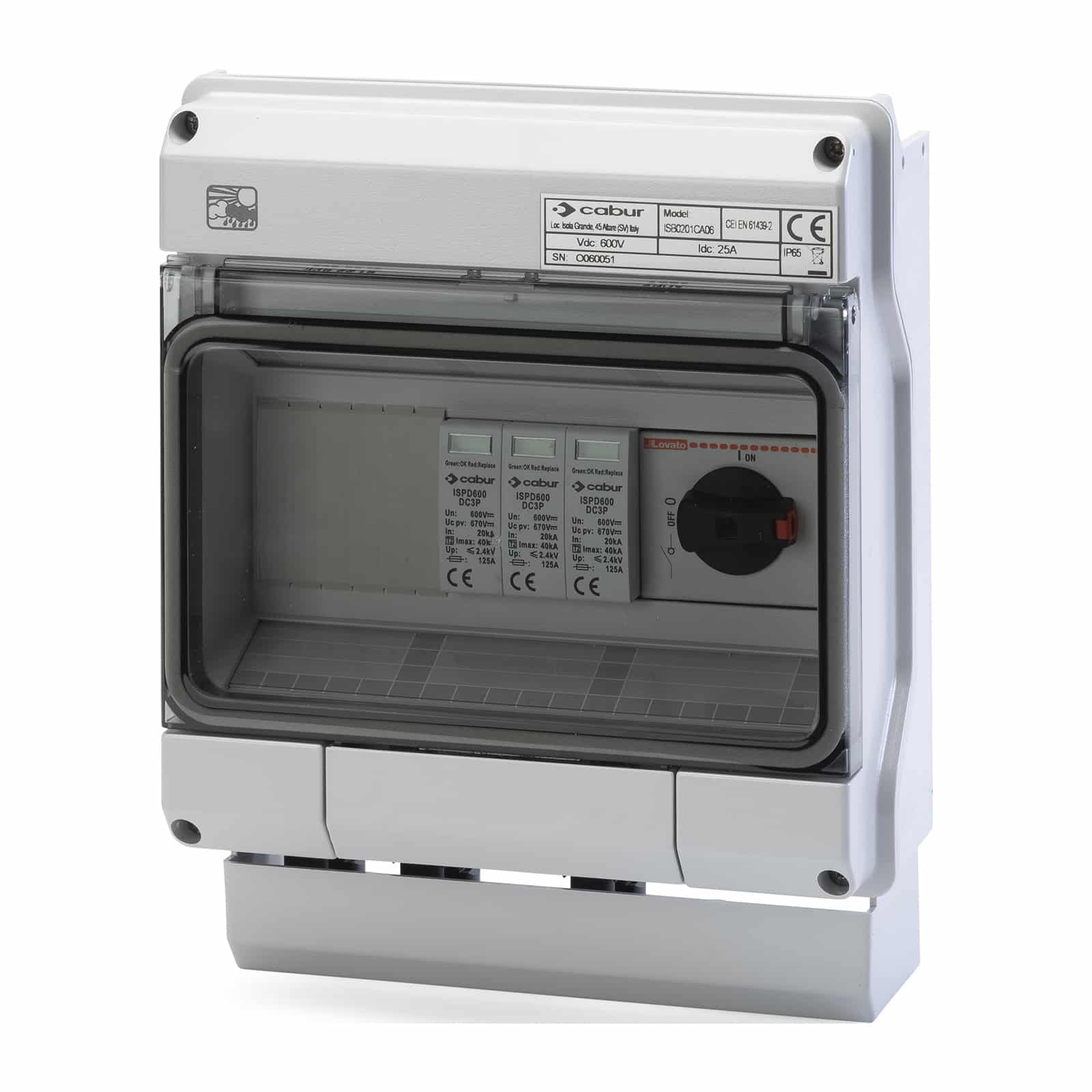 CABUR - Quadro stringa DC senza bobina sgancio, 1 stringa / 1 uscita, 1000V + fusibile. ISB11CSSN00001
