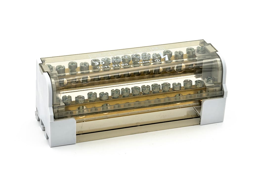 CEMBRE - Ripartitore compatto bipolare serie DBLOCK, a serraggio diretto, 125A 15 vie sezione ingresso 35mmq SZ.35mmq. DB125-14/2C
