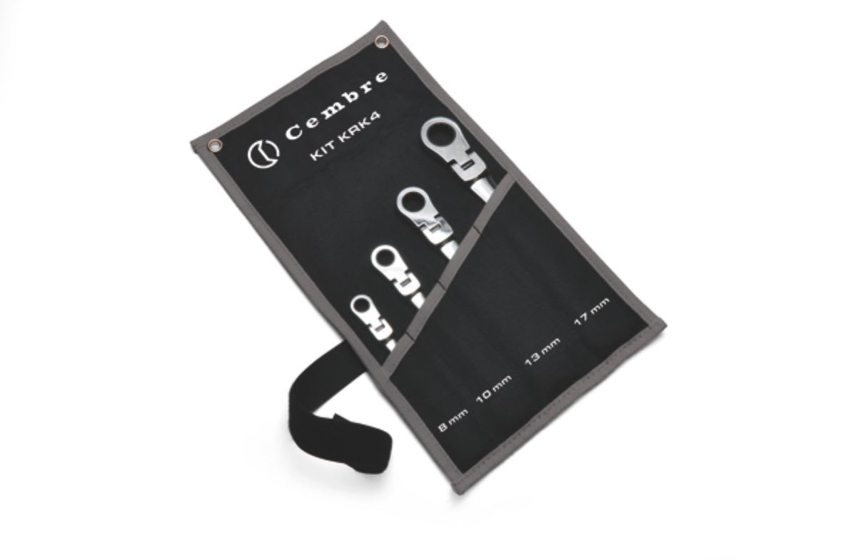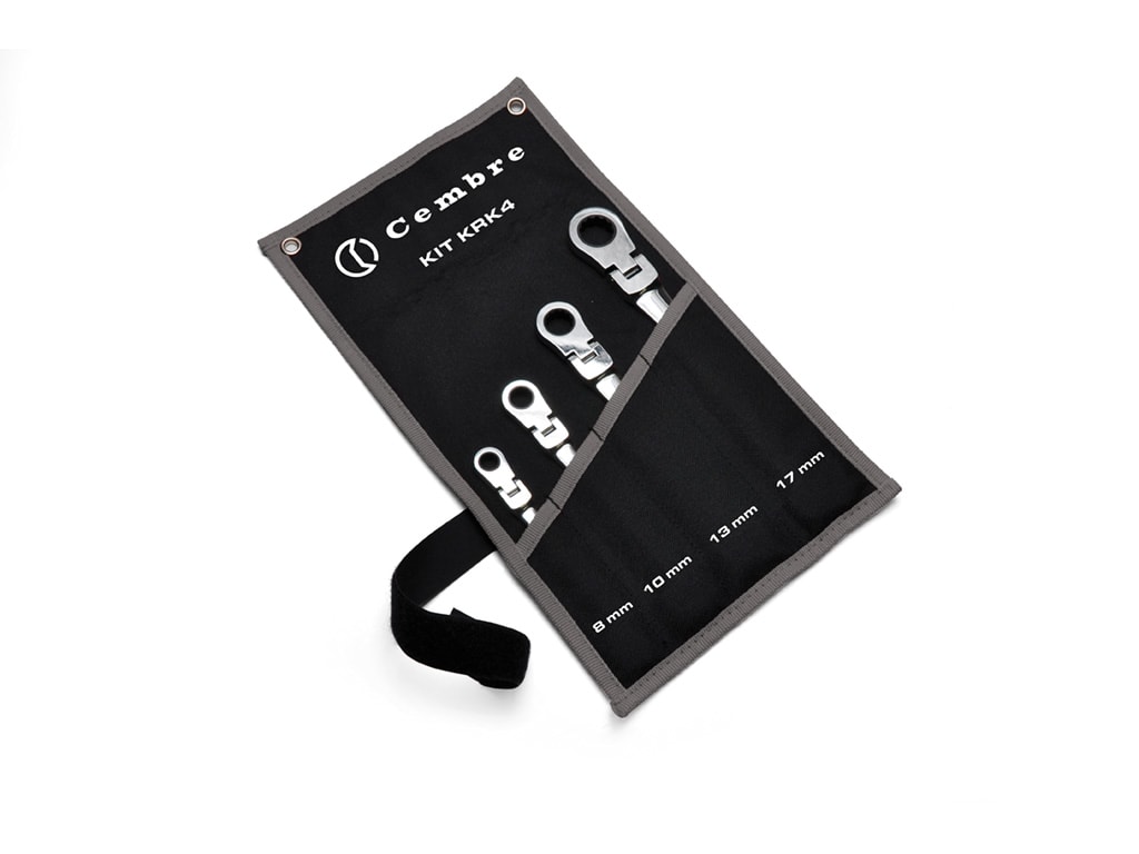 CEMBRE - Set di 4 chiavi combinate a cricchetto con testa snodata, ideale per professionisti e appassionati del fai-da-te. KRK4