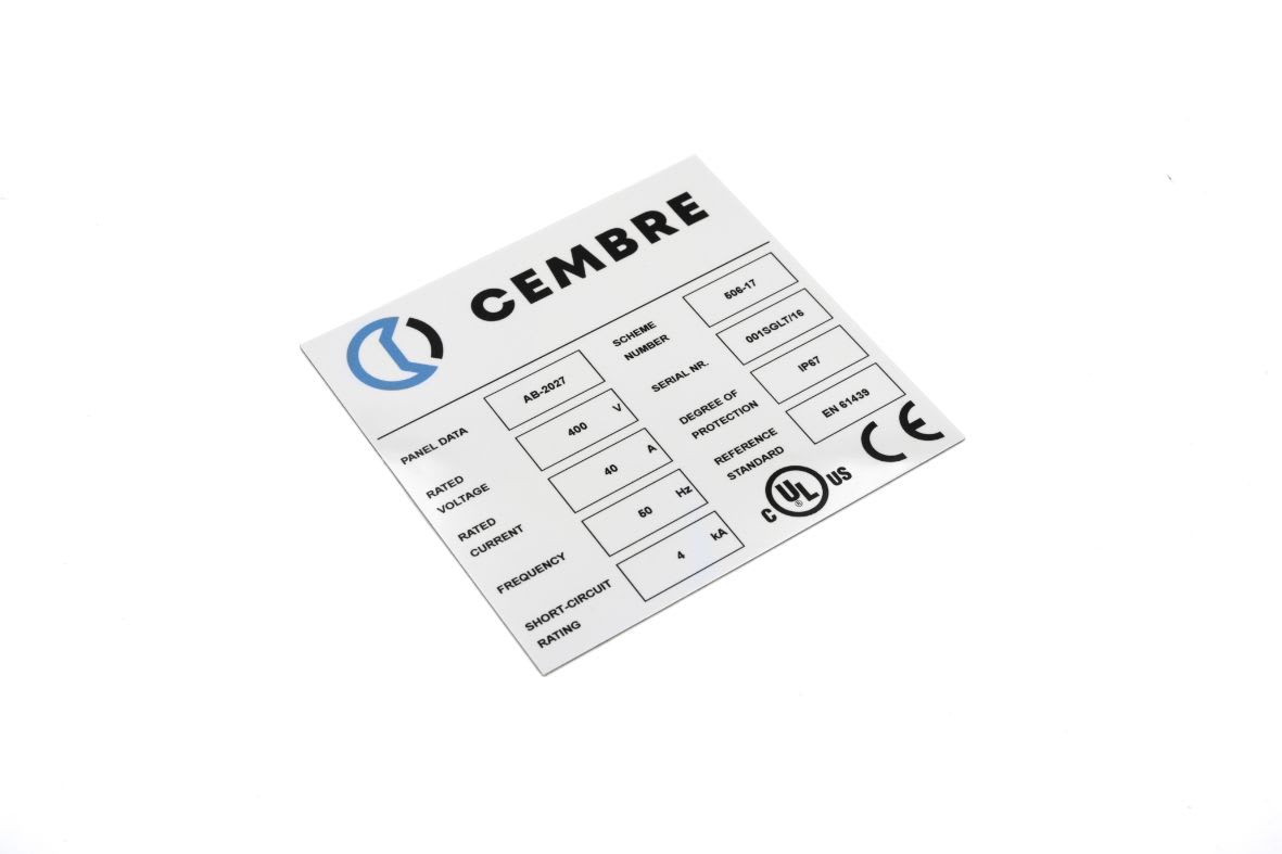 CEMBRE - Targa quadro MG-VRT-A ad.bianca PVC 105x110 88904
